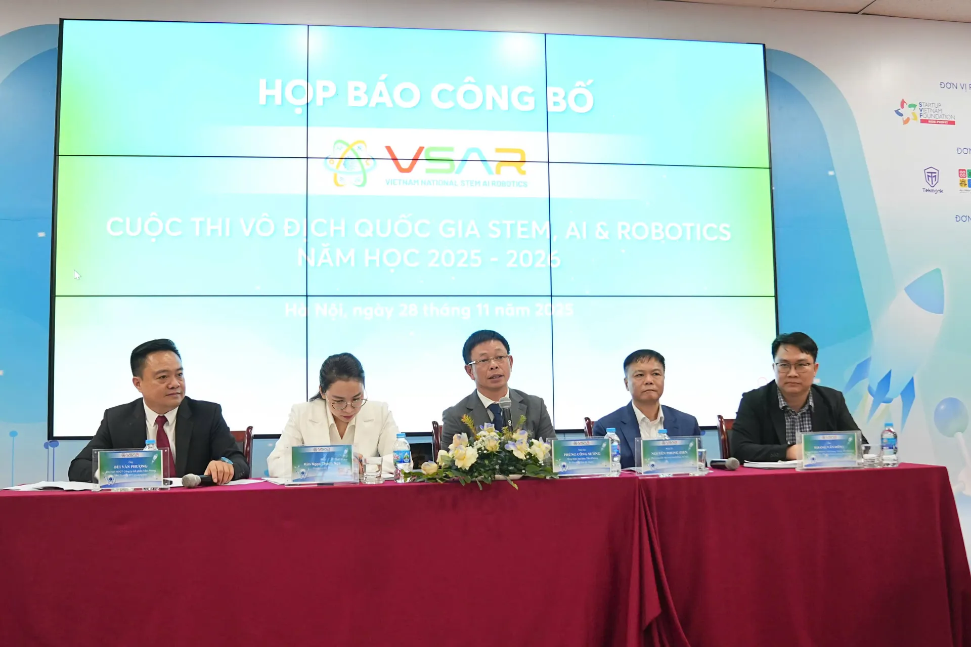 Ngày 28/11, Báo Tiền phong phối hợp Hội đồng Đội TƯ, Trung tâm Đổi mới sáng tạo quốc gia, Đại học Bách khoa Hà Nội và các đơn vị đồng hành tổ chức họp báo công bố Cuộc thi vô địch quốc gia STEM, AI, Robotics (VSAR) năm học 2025 – 2026.