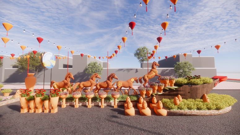 Tại cầu Kênh Ngang số 7, sẽ được thiết kế linh vật ngựa và hoa. Ảnh đồ họa