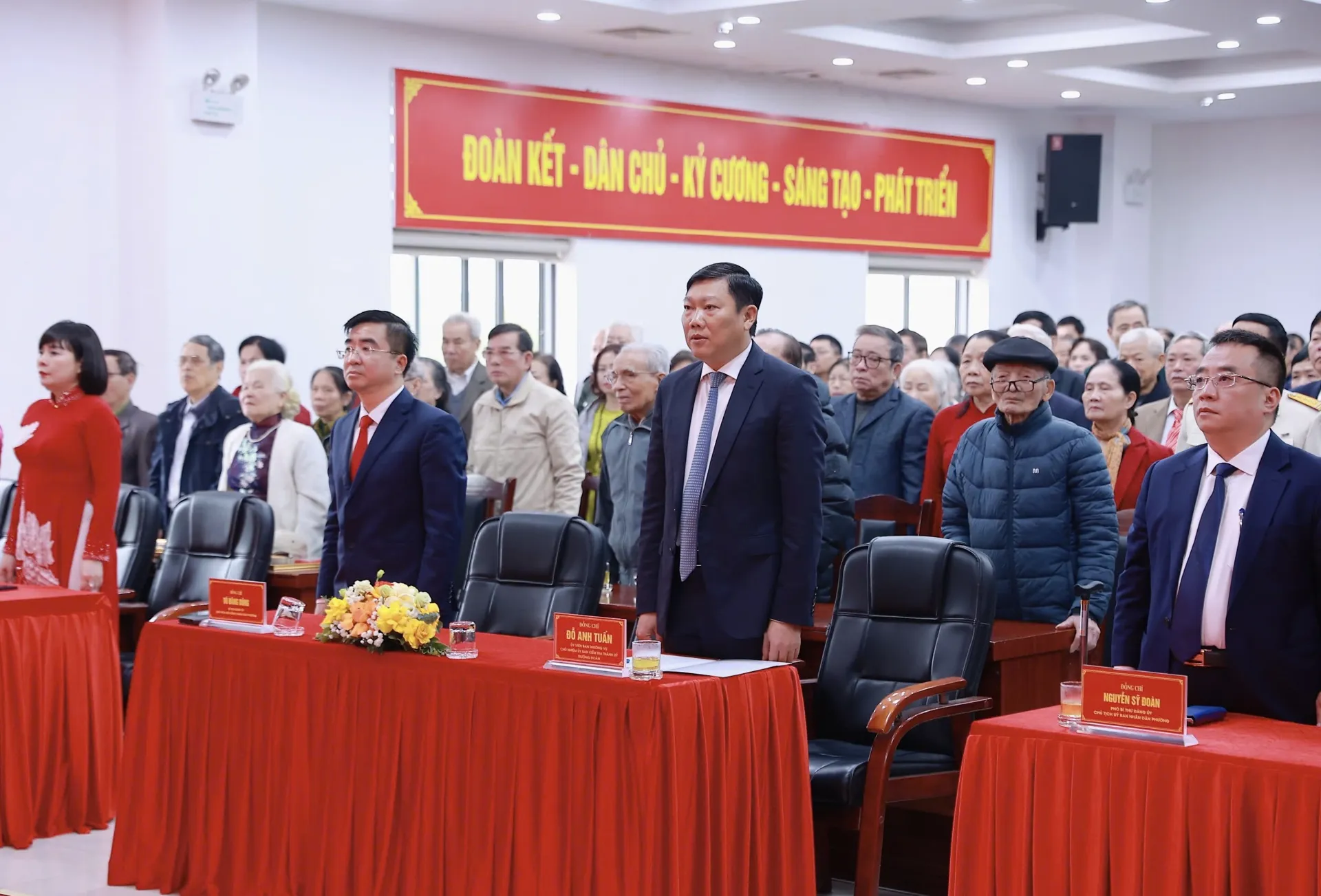 Ủy viên Ban Thường vụ Thành ủy, Chủ nhiệm Ủy ban Kiểm tra Thành ủy Hà Nội Đỗ Anh Tuấn trao Huy hiệu Đảng tặng các đảng viên lão thành