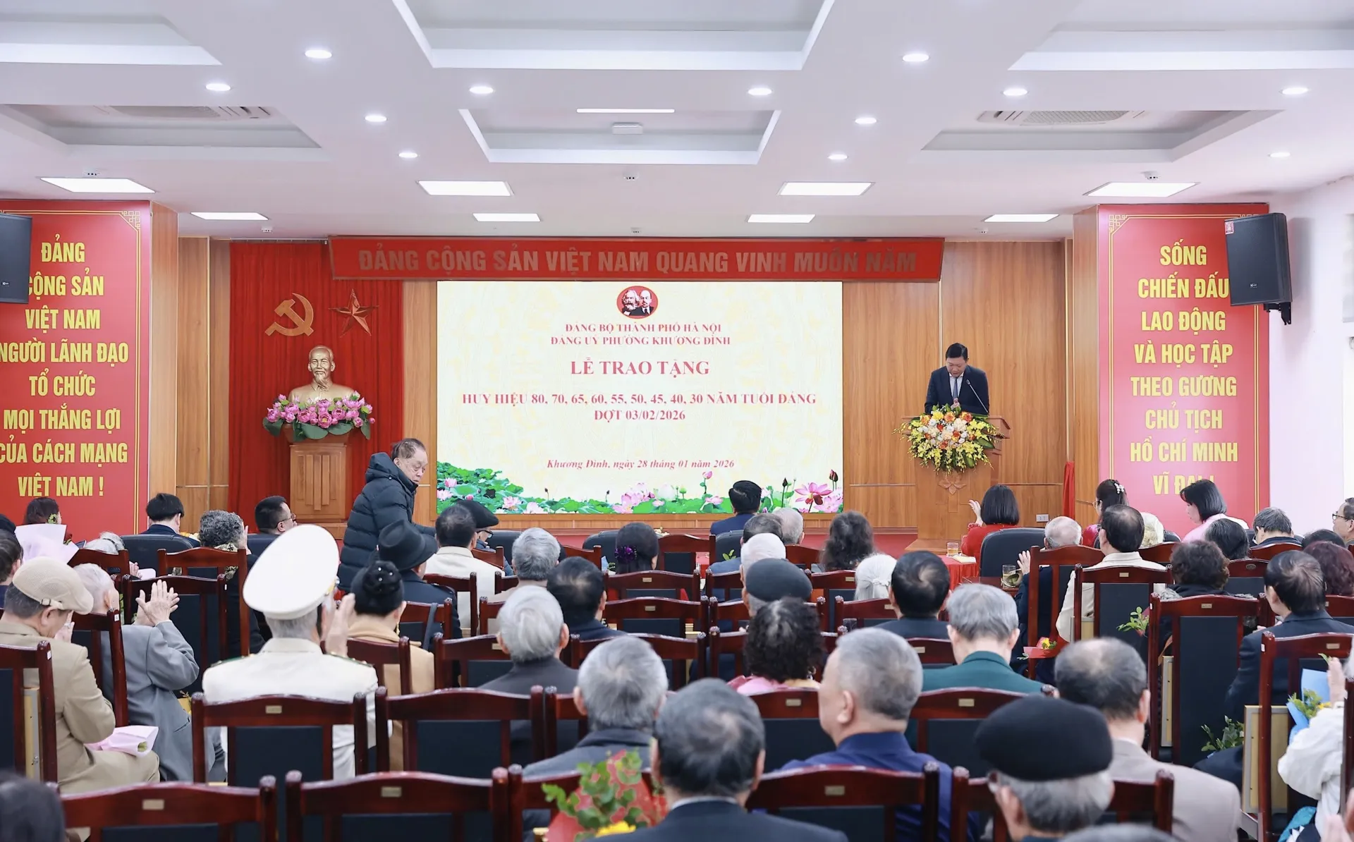 Kinhtedothi - Ngày 28/1, Đảng bộ phường Khương Đình đã tổ chức Lễ trao tặng Huy hiệu Đảng đợt 3/2/2026 cho các đảng viên tiêu biểu trên địa bàn.