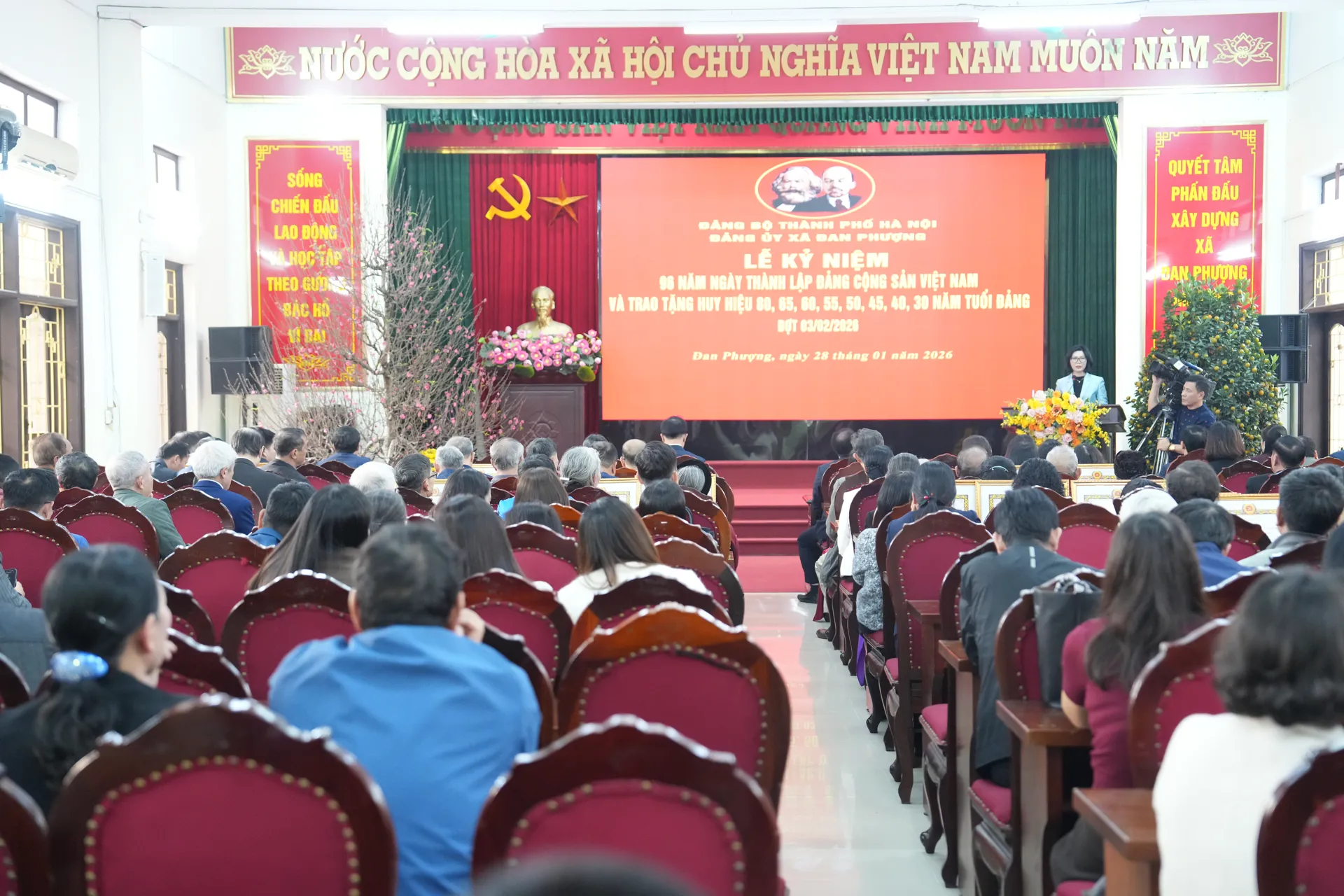 Kinhtedothi – Chiều 28/1, Đảng ủy xã Đan Phượng trang trọng tổ chức Lễ kỷ niệm 96 năm Ngày thành lập Đảng Cộng sản Việt Nam (3/2/1930 - 3/2/2026) và trao tặng Huy hiệu 80, 65, 60, 50, 45, 40, 30 năm tuổi Đảng, đợt 3/2/2026. Tới dự có Phó Bí thư Thành ủy, Chủ tịch HĐND TP Phùng Thị Hồng Hà.