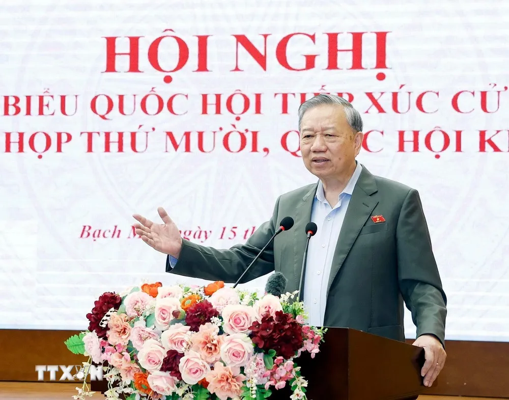 Tổng Bí thư Tô Lâm phát biểu tại cuộc tiếp xúc cử tri Hà Nội sau Kỳ họp thứ 10, Quốc hội khóa XV. Ảnh: TTXVN