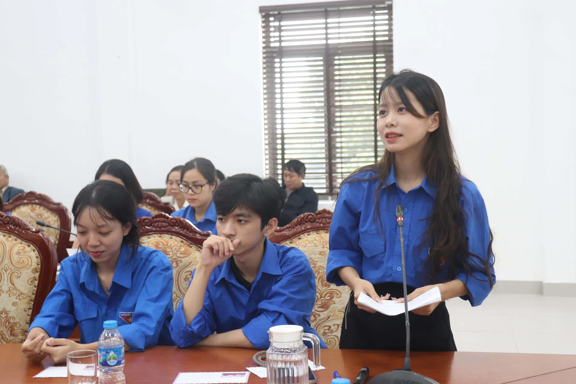Đoàn viên Lê Thảo Vân - Chi đoàn Tổ dân phố Đại Cát 1 nêu ý kiến tại hội nghị.