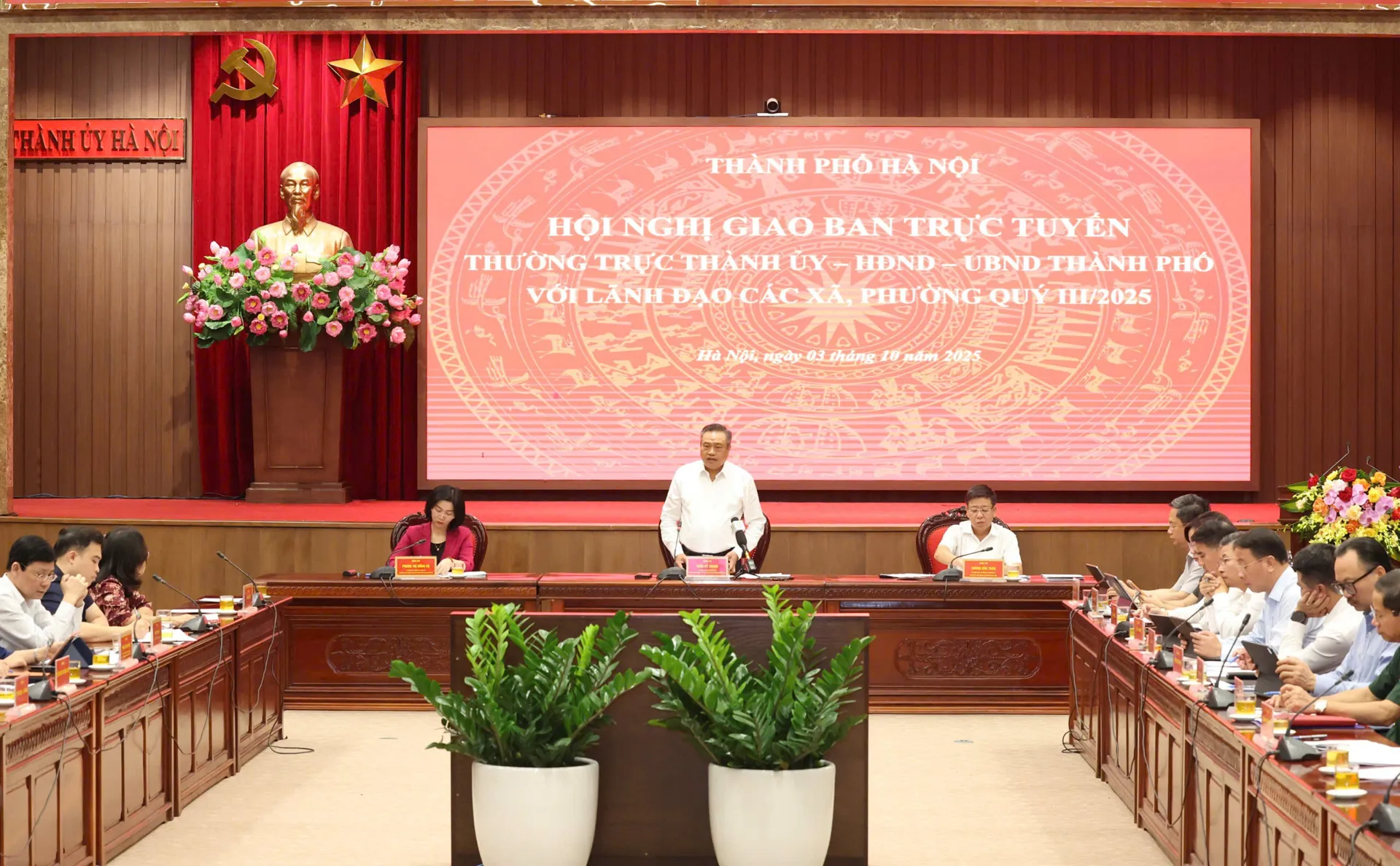 Ngày 3/10, TP Hà Nội tổ chức Hội nghị giao ban trực tuyến giữa Thường trực Thành ủy - HĐND - UBND TP với lãnh đạo các xã, phường quý III/2025.