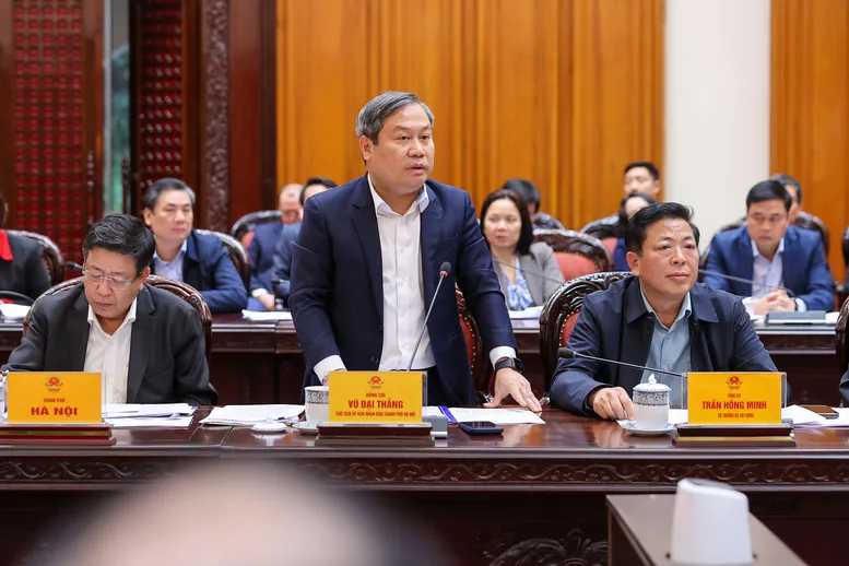 Chủ tịch UBND TP Hà Nội Vũ Đại Thắng báo cáo - Ảnh: VGP/Nhật Bắc