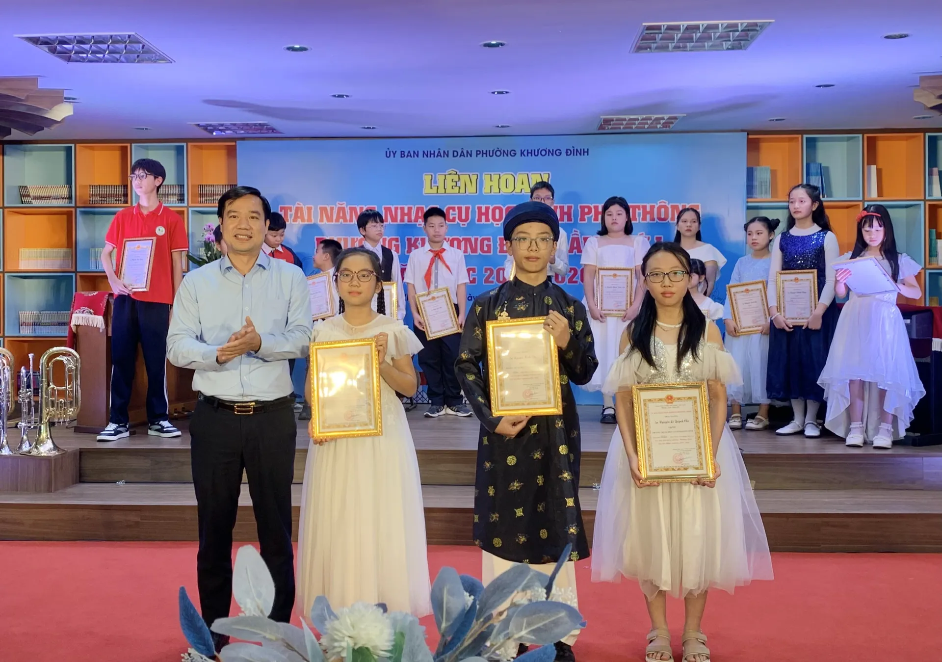 Trao giải cho các thí sinh tại Liên hoan tài năng nhạc cụ học sinh phường Khương Đình lần thứ nhất