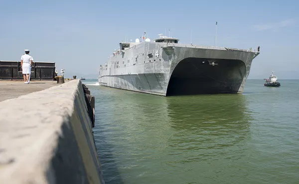 | Tàu vận tải viễn chinh cao tốc USNS Fall River (T-EPF-4) của Hoa Kỳ cập Cảng Tiên Sa, thành phố Đà Nẵng, ngày 8/5 để tham gia Chương trình Đối tác Thái Bình Dương 2017. Chương trình Đối tác Thái Bình Dương là hoạt động hỗ trợ nhân đạo và chuẩn bị cứu trợ thiên tai đa quốc gia thường niên lớn nhất được tiến hành ở khu vực Ấn Độ Dương - Châu Á - Thái Bình Dương. Ảnh: Hải quân Hoa Kỳ |
