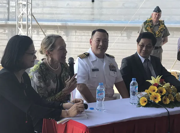 | Tổng Lãnh sự Mary Tarnowka (thứ hai từ trái sang), Đại tá Hải quân Hoa Kỳ Stanfield Chien (thứ ba từ trái sang), Tổng chỉ huy PP17 và ông Lâm Quang Minh (bên phải), Giám đốc Sở Ngoại vụ Đà Nẵng, tại cuộc họp báo về Chương trình Đối tác Thái Bình Dương 2017 tại Đà Nẵng. Ảnh: Tổng Lãnh sự quán Hoa Kỳ tại Thành phố Hồ Chí Minh |