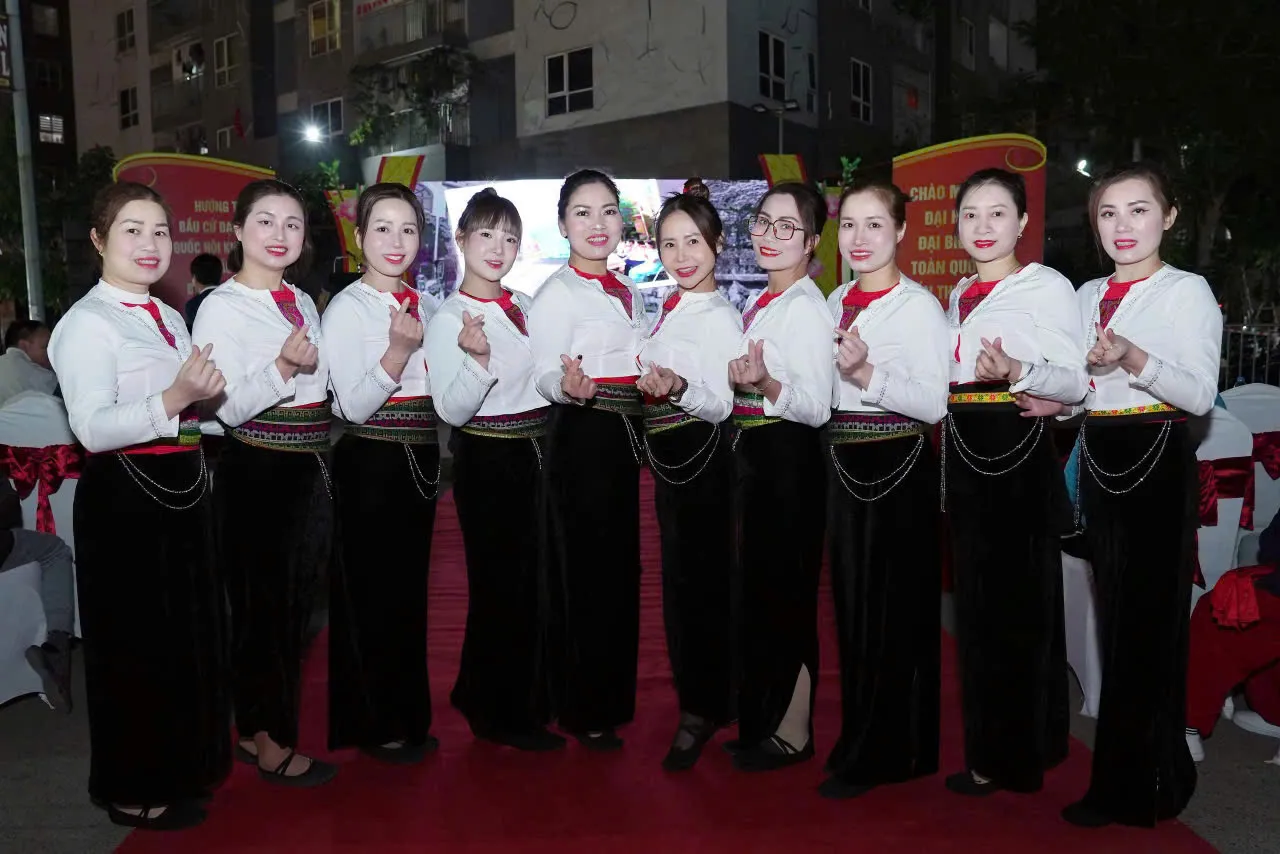 Ở phần tiếp theo, chùm ca khúc như “Vinh quang Việt Nam ơi”, “Màu cờ tôi yêu”, “Tổ quốc gọi tên mình”, “Đảng như mặt trời”, hay “Liên khúc Xuân” đã tạo nên mạch cảm xúc liên tục, từ hào hùng đến tha thiết, từ trẻ trung đến rộn ràng. Nghệ thuật ở đây chính là sự đa dạng về thể loại: tốp ca, đơn ca, dân vũ, múa phụ họa… giúp khán giả được trải nghiệm nhiều cung bậc cảm xúc.
