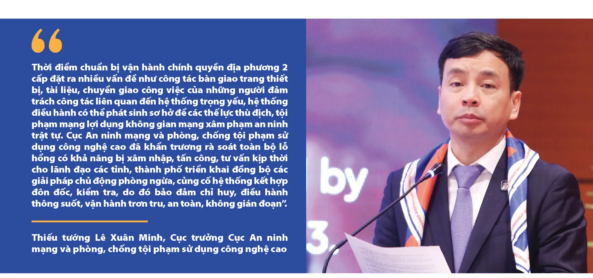 Ở góc độ quản lý nhà nước về an ninh mạng, Thiếu tướng Lê Xuân Minh, Cục trưởng Cục An ninh mạng và phòng, chống tội phạm sử dụng công nghệ cao (Bộ Công an) khẳng định: “An ninh mạng là tuyến phòng thủ không thể thiếu để bảo vệ chủ quyền số và bảo đảm trật tự xã hội trên không gian mạng. Các cuộc tấn công mạng xuyên quốc gia, hành vi đánh cắp dữ liệu, làm tê liệt hệ thống thông tin, hay thao túng dư luận… gây thiệt hại nghiêm trọng cho nhiều quốc gia. Trong thế giới ngày càng vận hành bằng dữ liệu, an ninh mạng trở thành năng lực cốt lõi quốc gia, bệ đỡ vững chắc cho sự phát triển”.