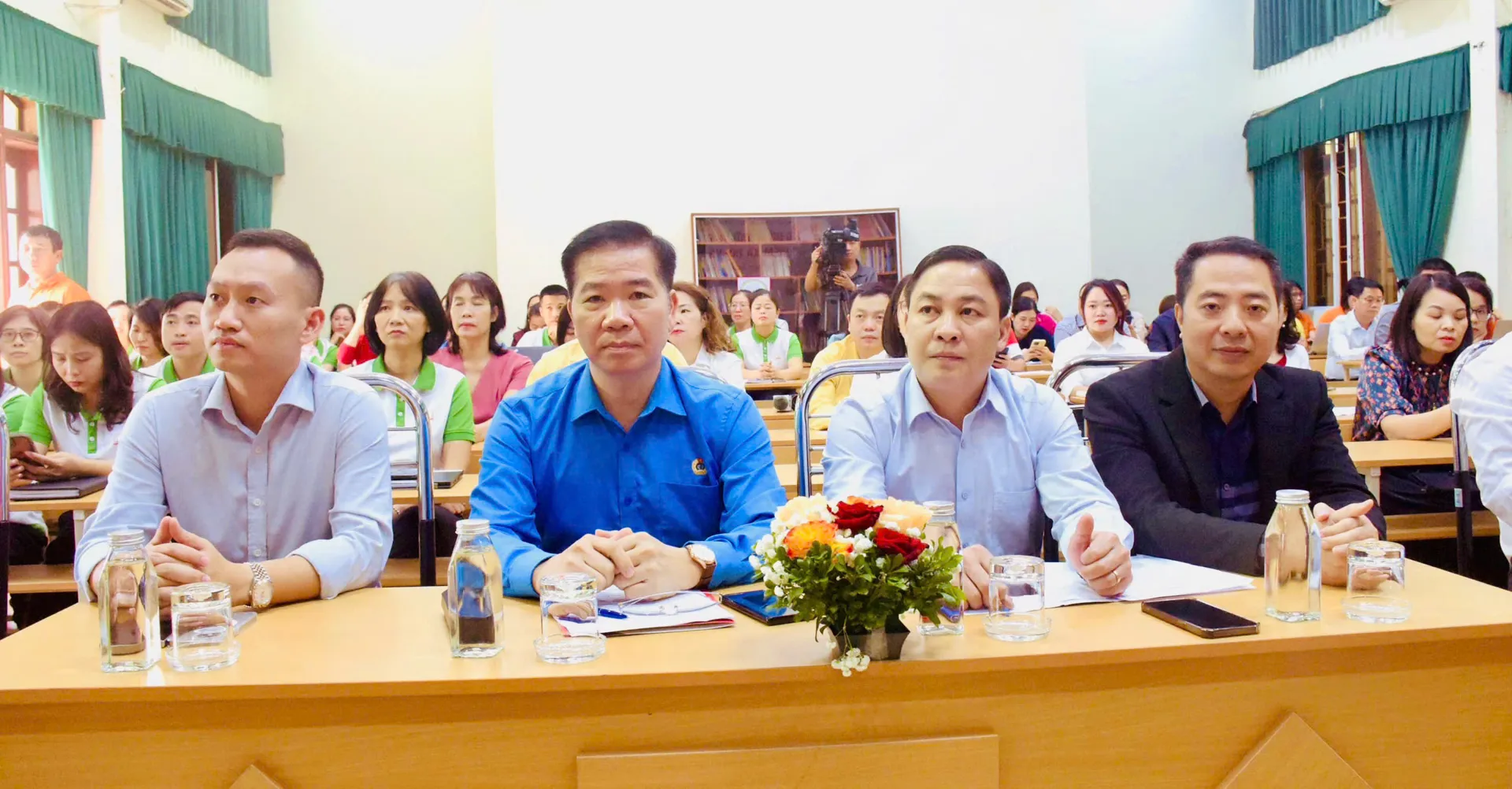 Các đại biểu tham dự buổi Đối thoại trực tiếp, giao lưu trực tuyến với chủ đề “Những điểm mới về pháp luật lao động, bảo hiểm xã hội và Công đoàn cơ sở”.
