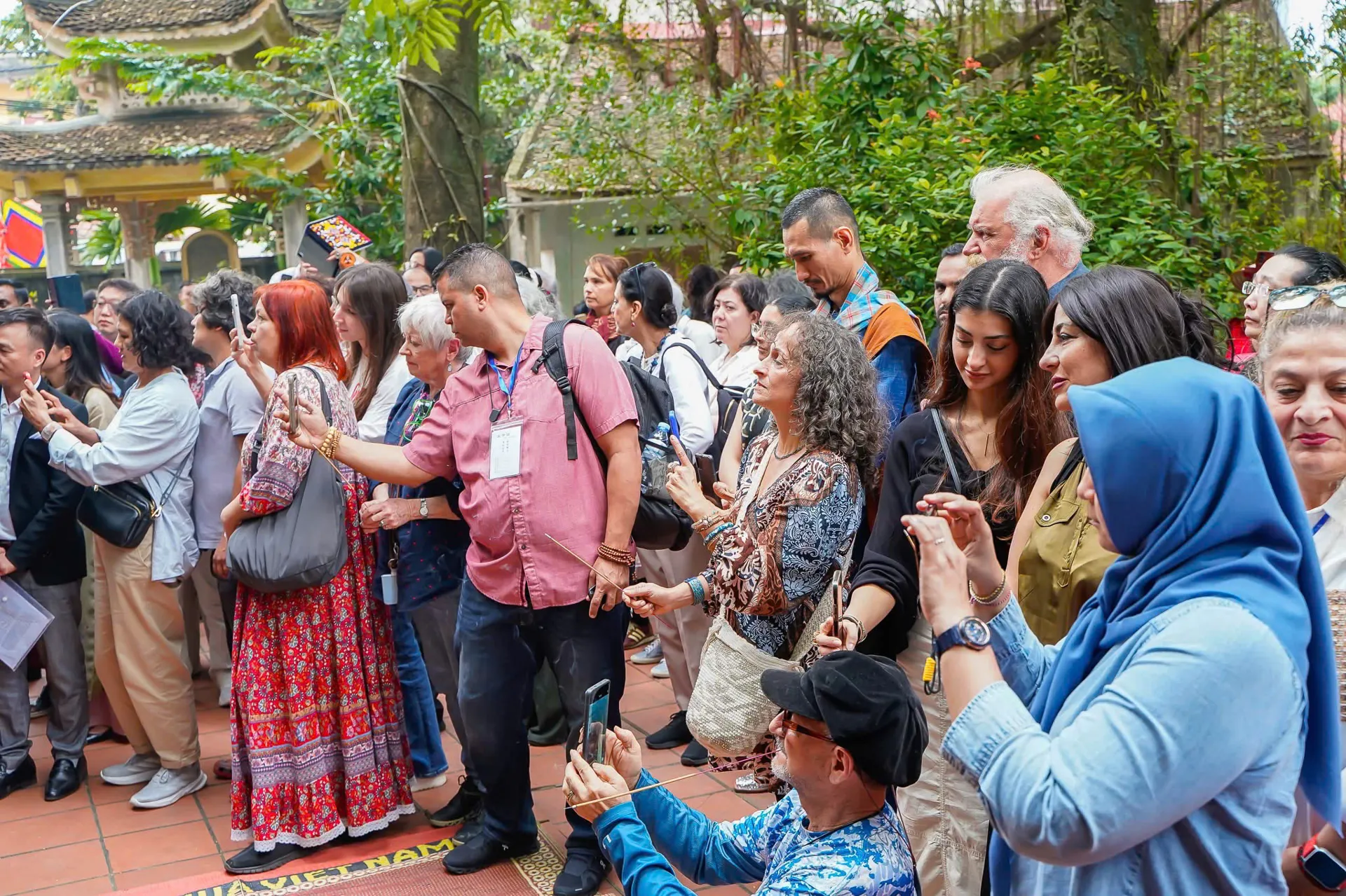 Các đại biểu quốc tế là các chuyên gia thủ công mỹ nghệ, nghệ nhân, nhà nghiên cứu và đại diện các tổ chức trong khuôn khổ chương trình thẩm định để công nhận làng nghề khảm trai - sơn mài Chuyên Mỹ trở thành thành viên Mạng lưới các Thành phố Sáng tạo trên toàn thế giới năm 2025.