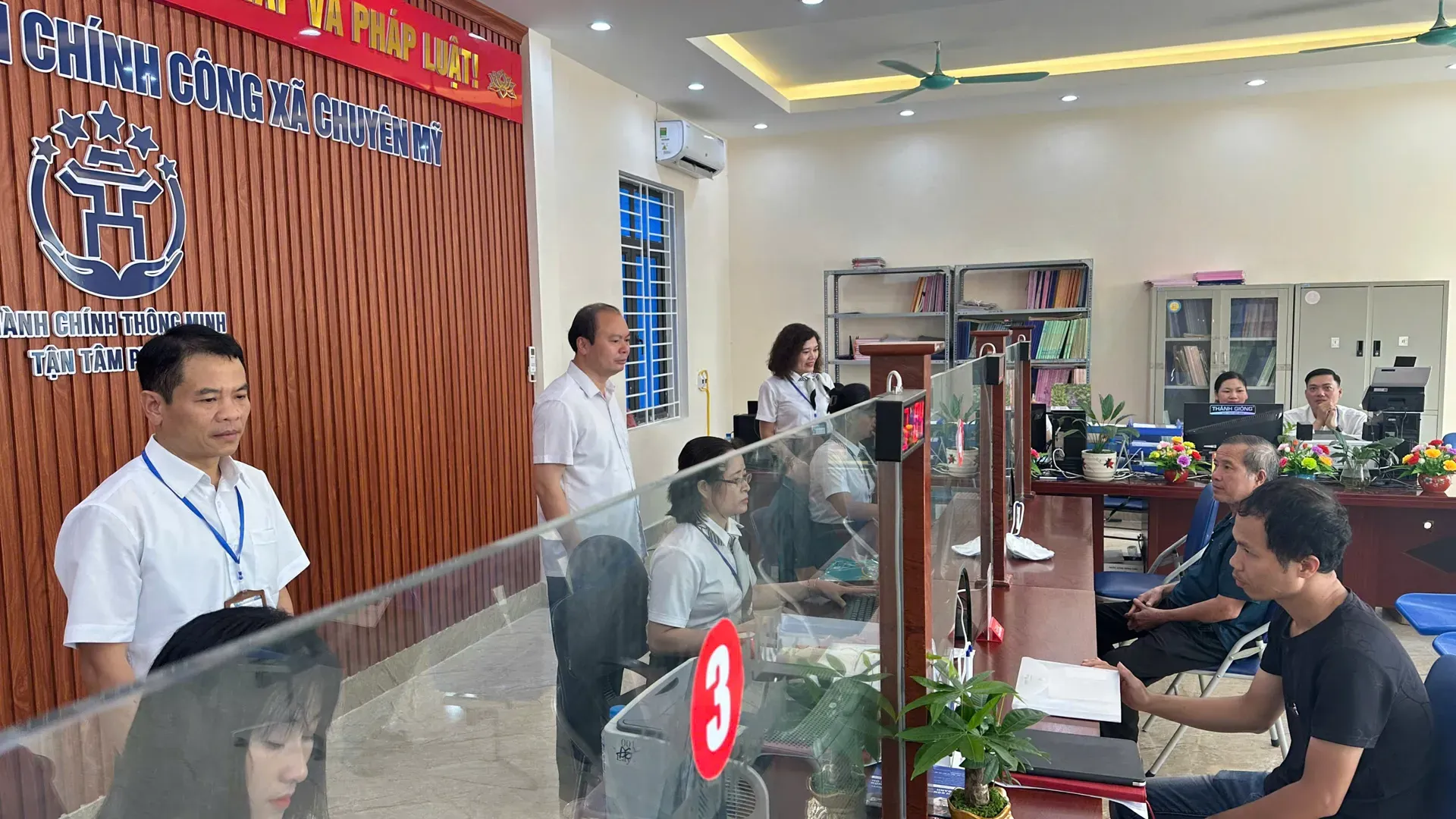 Chủ tịch UBND xã Chuyên Mỹ Nguyễn Hữu Chi kiểm tra hoạt động tại điểm hành chính công của xã