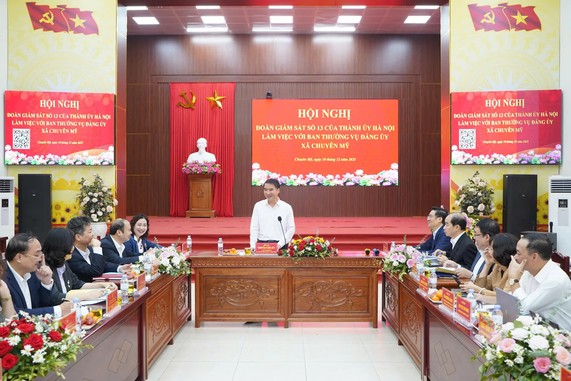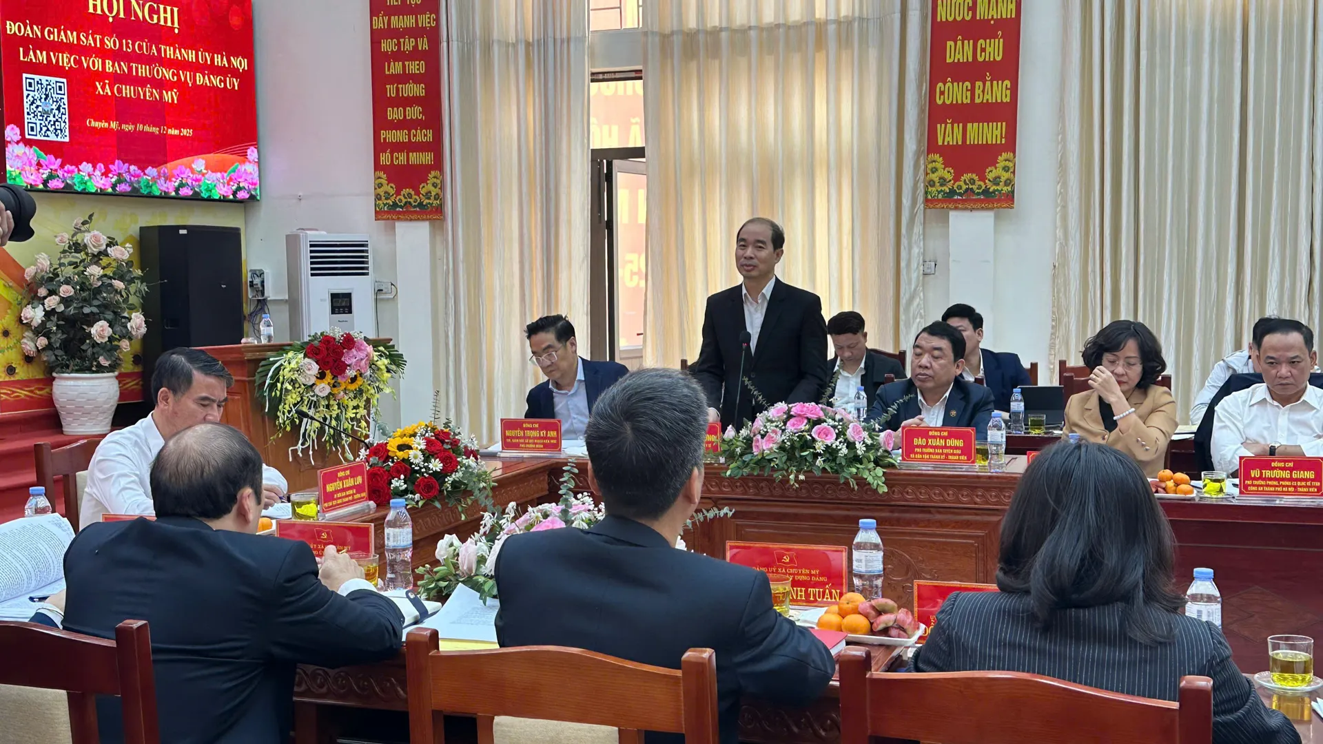 Kinhtedothi - Ngày 10/12, Đoàn giám sát số 13 của Ban Thường vụ Thành ủy Hà Nội do Ủy viên Ban Thường vụ Thành ủy, Phó Chủ tịch UBND thành phố Hà Nội Nguyễn Xuân Lưu làm Trưởng đoàn đã làm việc với xã Chuyên Mỹ về công tác lãnh đạo, chỉ đạo và tổ chức thực hiện các nhiệm vụ cấp bách những tháng cuối năm 2025.