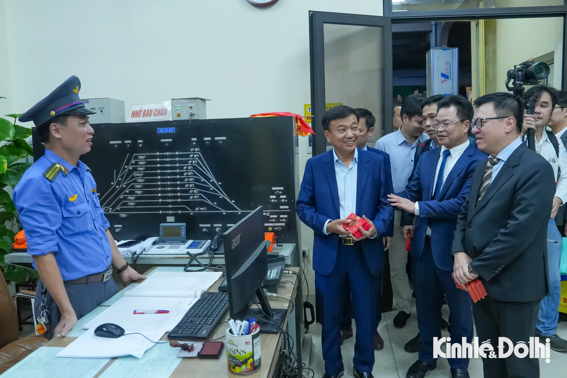 Ủy viên Trung ương Đảng, Tổng Biên tập Báo Nhân Dân, Phó Trưởng ban Tuyên giáo và Dân vận Trung ương, Chủ tịch Hội Nhà báo Việt Nam Lê Quốc Minh và Thứ trưởng Bộ Xây dựng Nguyễn Danh Huy tặng quà cho các cán bộ, công nhân viên trực tại ga Hà Nội.