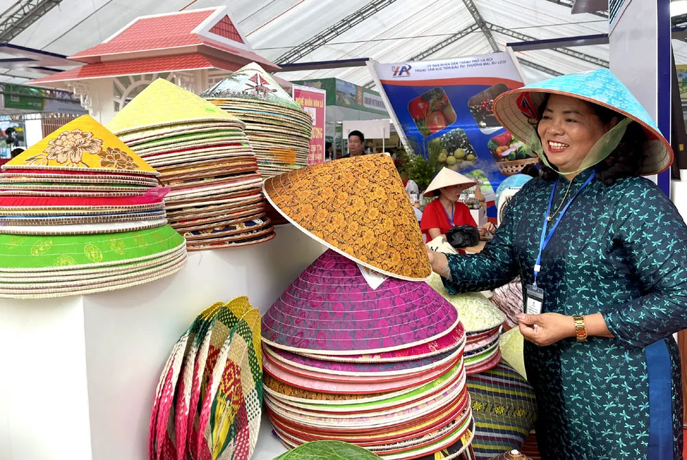 Nghệ nhân Tạ Thu Hương, cho biết: "Khoảng 6 tháng đầu có dịch bệnh, hầu hết sản phẩm nón của chúng tôi làm ra không bán được. Bà con chủ yếu làm cầm cự và nhiều người phải nghỉ việc. Tôi rất trăn trở để sản xuất ra những sản phẩm chất lượng với 6 sản phẩm OCOP 4 sao, được truy xuất nguồn gốc và chỉ dẫn địa lý. Sản phẩm được giới thiệu tại Hội chợ là cơ hội để quảng bá sản phẩm đến các DN trong và ngoài nước, xúc tiến thương mại trên các kênh bán hàng, giúp cho những người làm nghề giữ được nghề với sản phẩm mang thương hiệu Hà Nội".