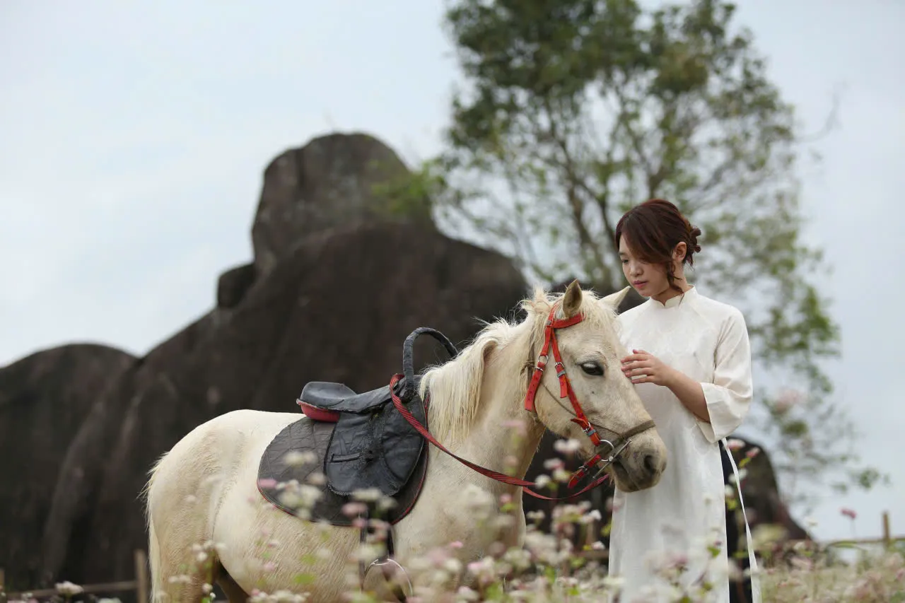 Hoặc tạo kiểu ảnh ấn tượng với ngựa trắng để chào mừng Tết Nguyên đán Bính Ngọ.