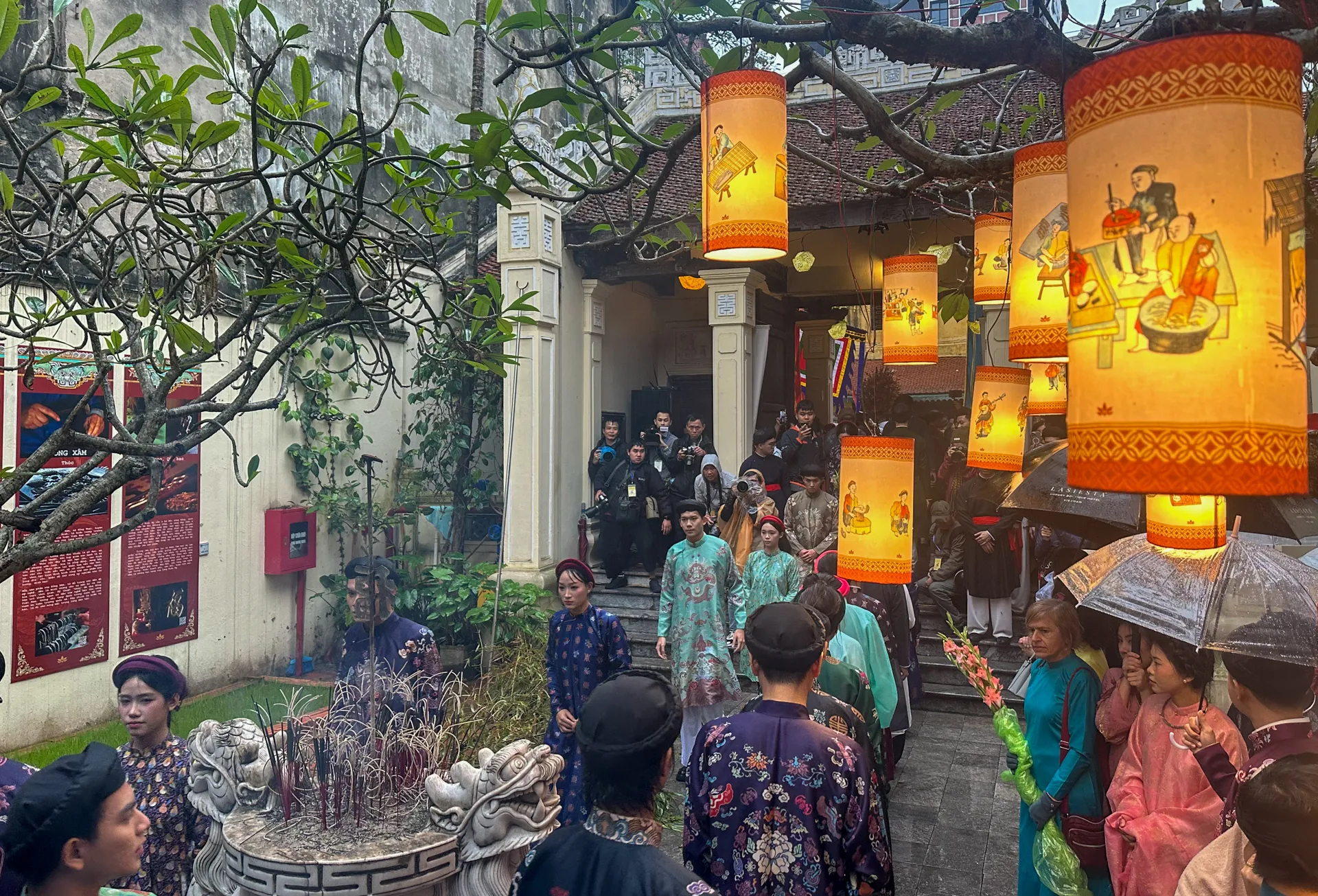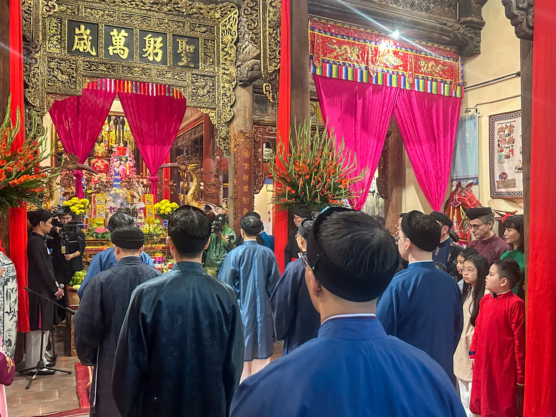 Không khí đầy trang nghiêm trong khoảnh khắc dâng lễ mừng Xuân mới tại đình Kim Ngân.