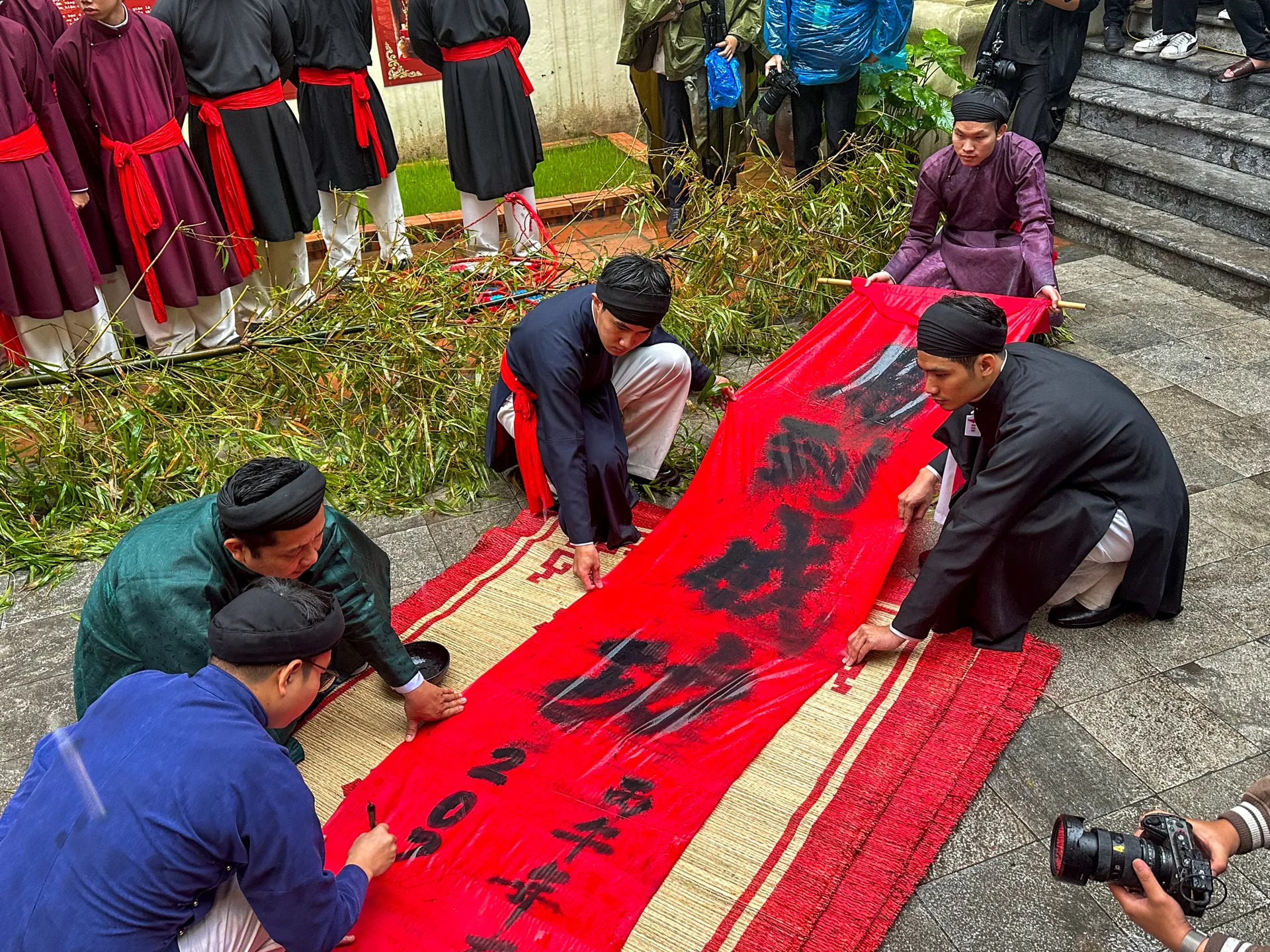 Không gian chương trình Tết Việt - Tết phố 2026 như chậm lại trong mùi mực tàu, sắc giấy đỏ và những nét bút của hoạt động viết thư pháp.