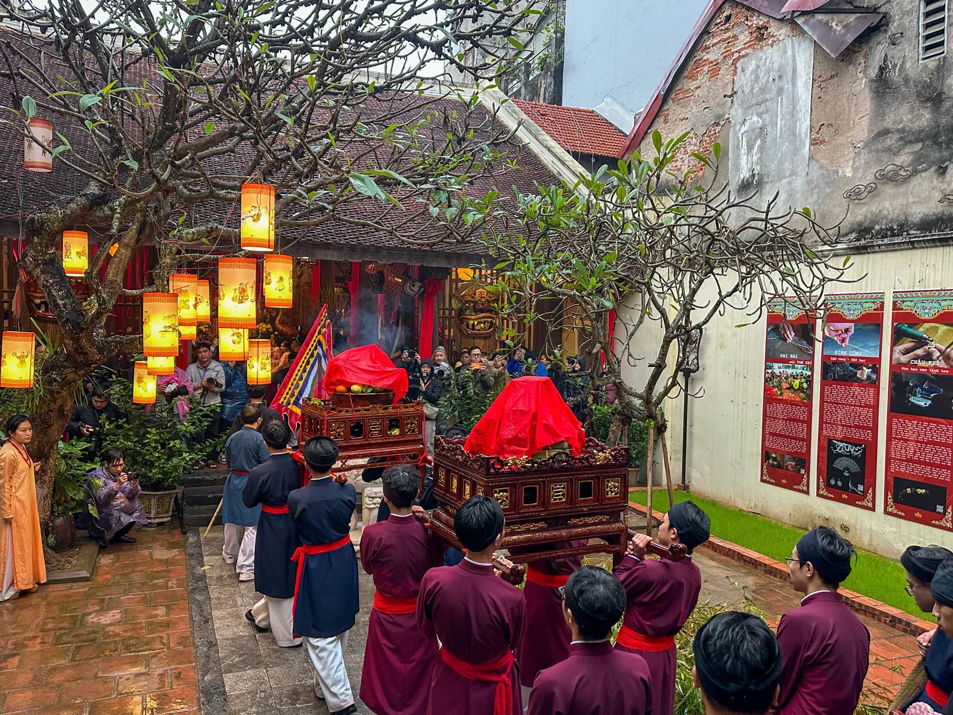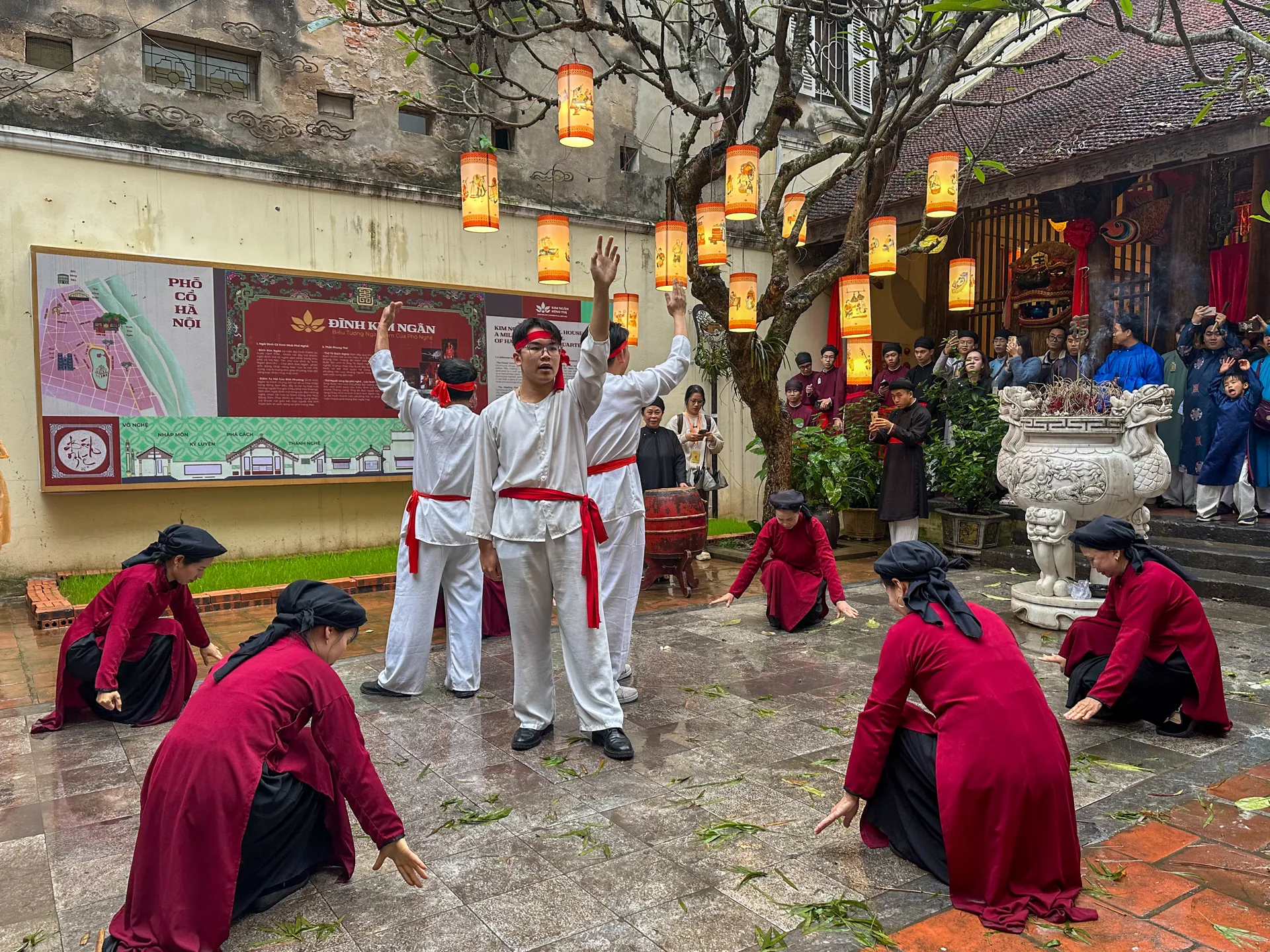 Các tiết mục biểu diễn văn hóa dân gian truyền thống trong khuôn khổ chương trình diễn ra tại không gian đình cổ Hà Nội nhằm tôn vinh giá trị văn hóa Tết Việt và khôi phục các sinh hoạt cộng đồng dịp đầu năm.