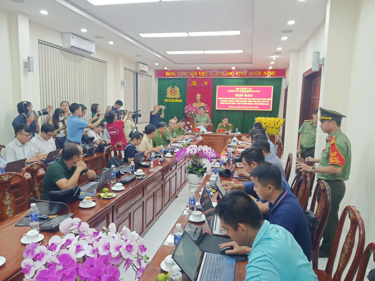 Quang cảnh buổi họp báo chiều 6/10/2025 tại Công an tỉnh Đồng Nai.