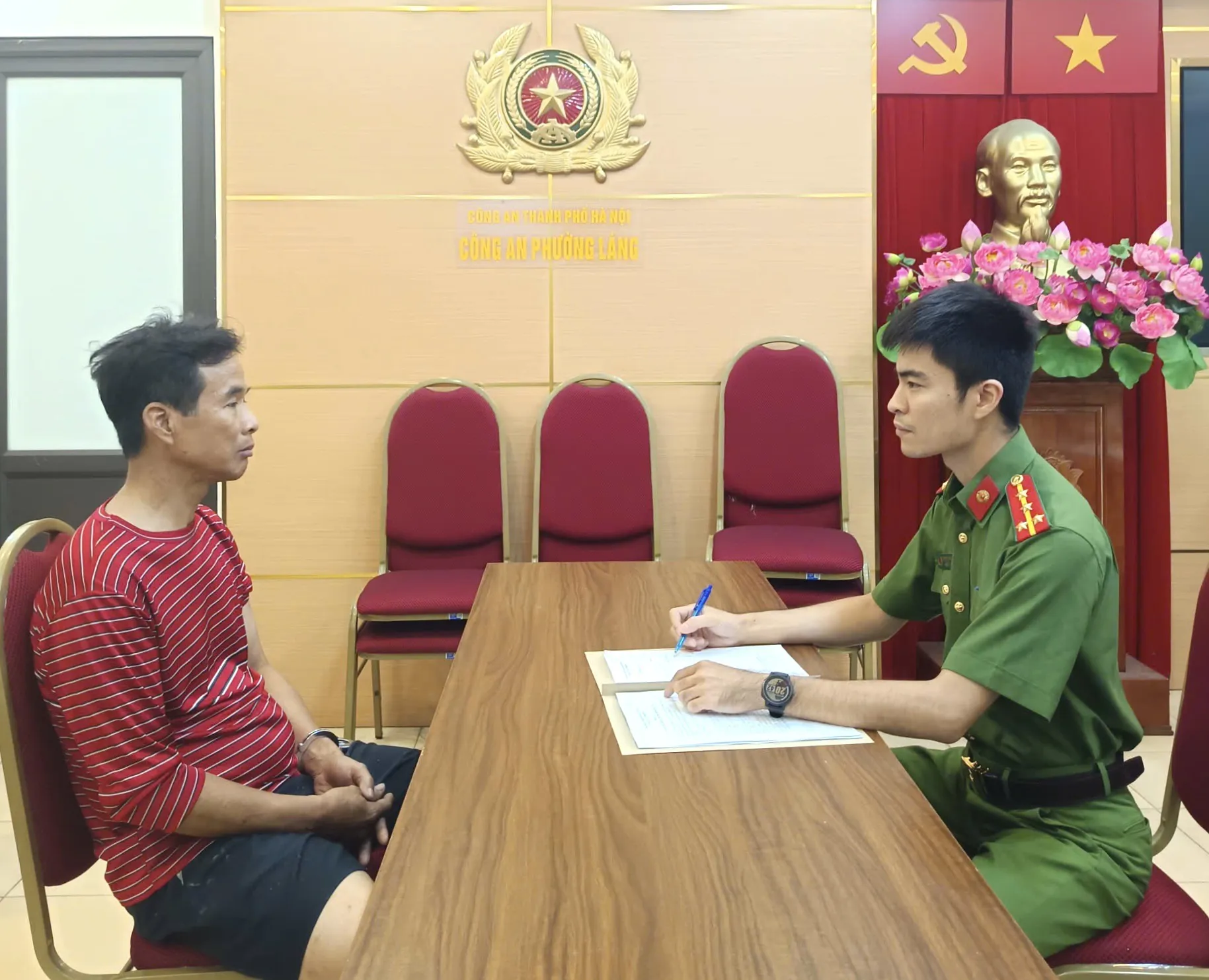 Đối tượng Hoàng Cao Sơn tại cơ quan Công an phường Láng.