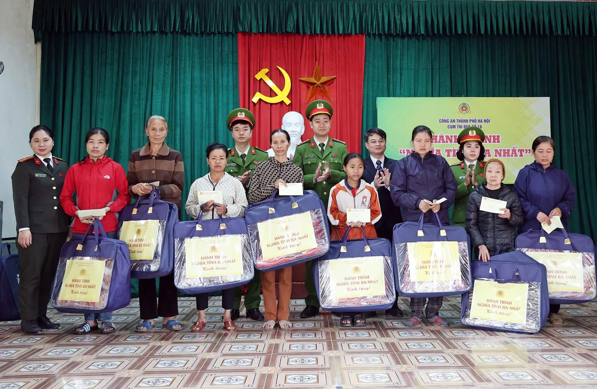 Kinhtedothi - Ngày 30/1, Cụm thi đua số 16 Công an TP Hà Nội đã tổ chức thăm, tặng 30 suất quà (1 chiếc chăn ấm mùa đông và 2 triệu đồng tiền mặt) cho 30 hộ gia đình có hoàn cảnh đặc biệt khó khăn, gia đình bị ảnh hưởng, thiệt hại của thiên tai, bão lũ ở một số thôn trên địa bàn xã Xuân Mai.