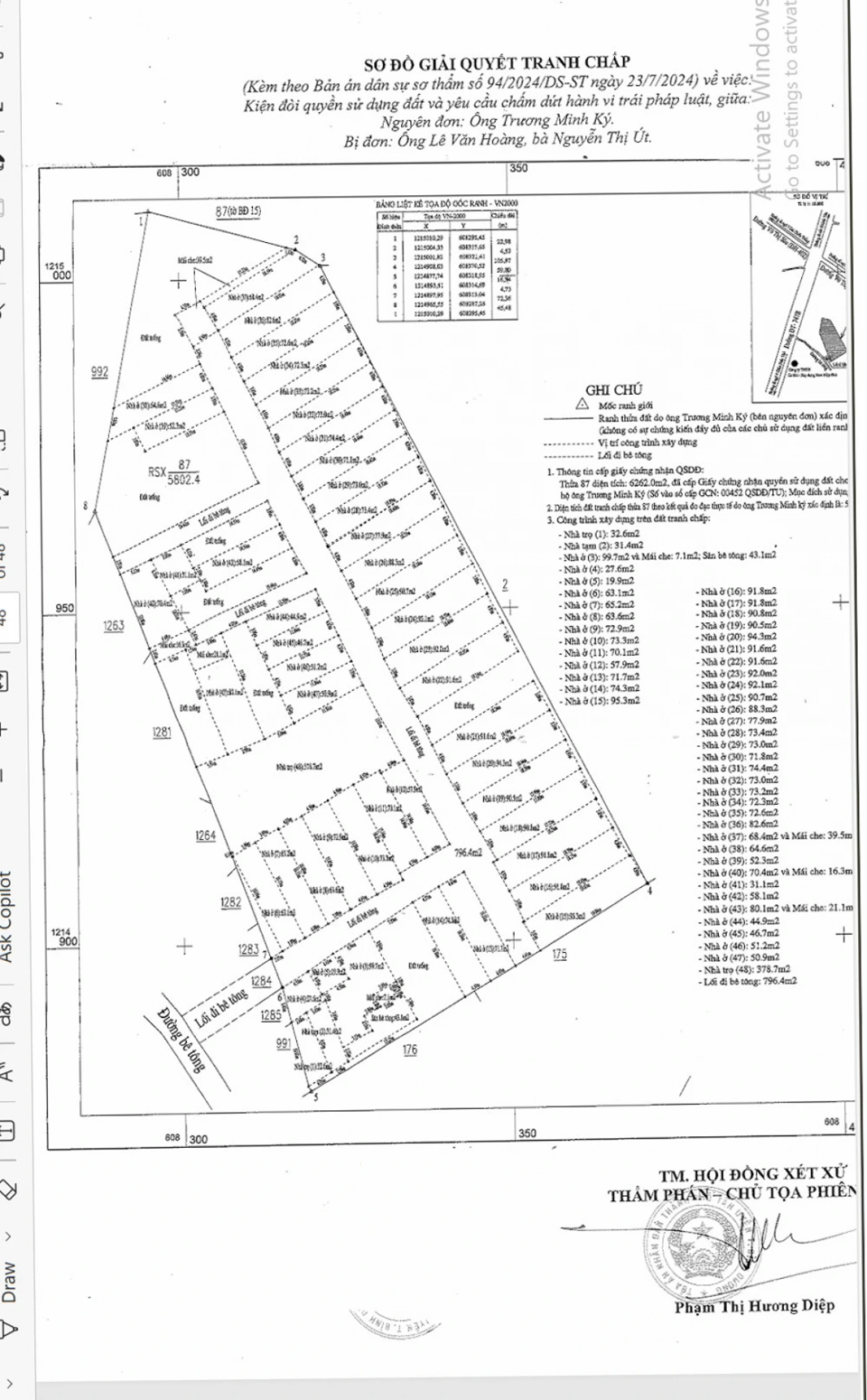 Sơ đồ khu đất cùng 48 công trình do ông Hoàng xây dựng và ráo bán, được cơ quan chức tỉnh Bình Dương trước đây vẽ lại.