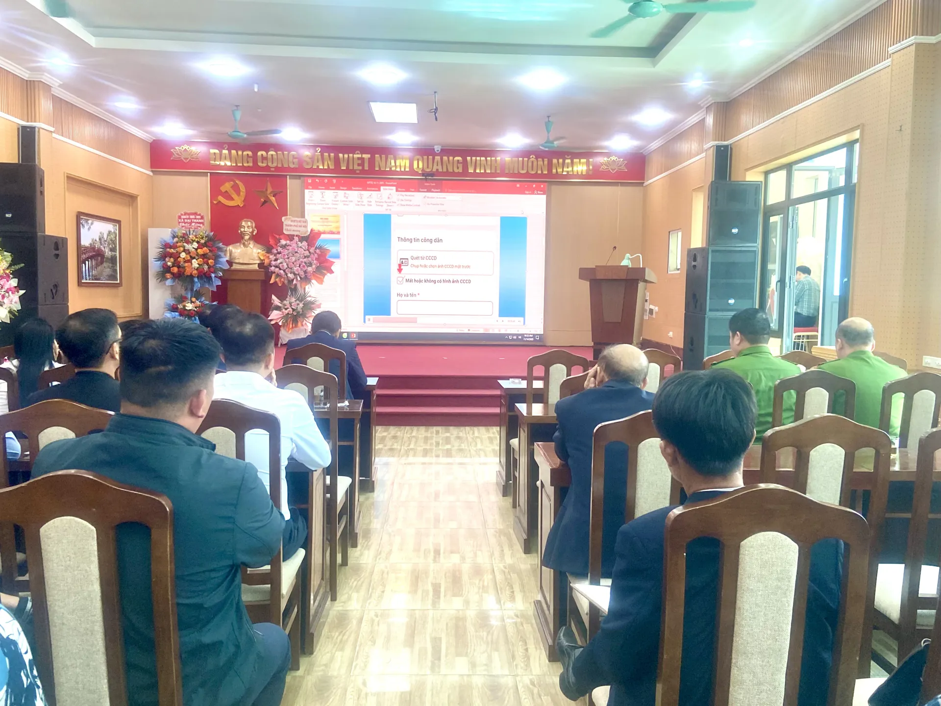 Phát biểu tại hội nghị, Trung tá Nguyễn Đình Hùng — Phó trưởng Công an xã — nhấn mạnh mục tiêu yêu cầu dữ liệu phải đạt chuẩn “đúng, đủ, sạch, sống”. Đồng chí cho biết, căn cứ kế hoạch của Công an thành phố Hà Nội (Kế hoạch số 375/KH-CAHN ngày 31/10/2025), Công an xã Đại Thanh sẽ thực hiện đầy đủ các bước: tiếp nhận danh sách do Cục C08 cung cấp, tuyên truyền, hướng dẫn công dân kê khai trên ứng dụng “Công dân Thủ đô số – iHanoi”, xác minh thực tế và cập nhật lên Hệ thống Đăng ký xe.