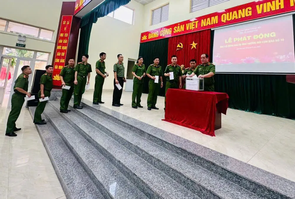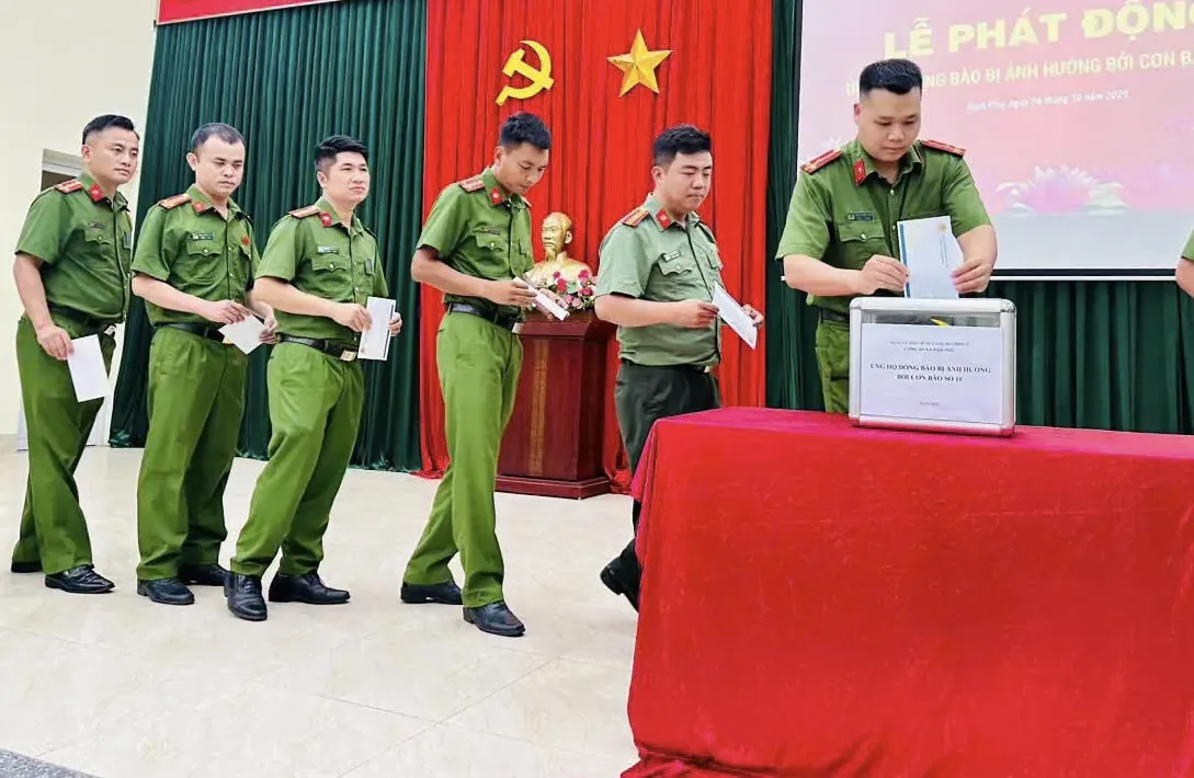 Công an xã Nam Phù chung tay ủng hộ đồng bào vượt qua bão số 10