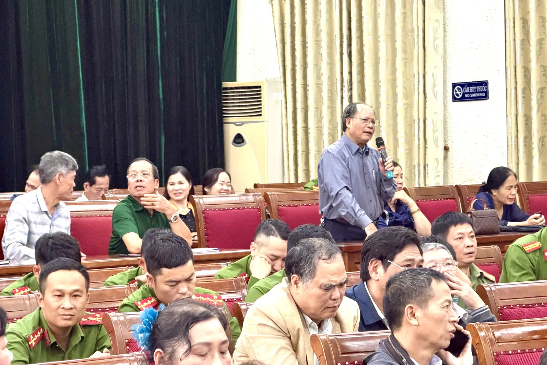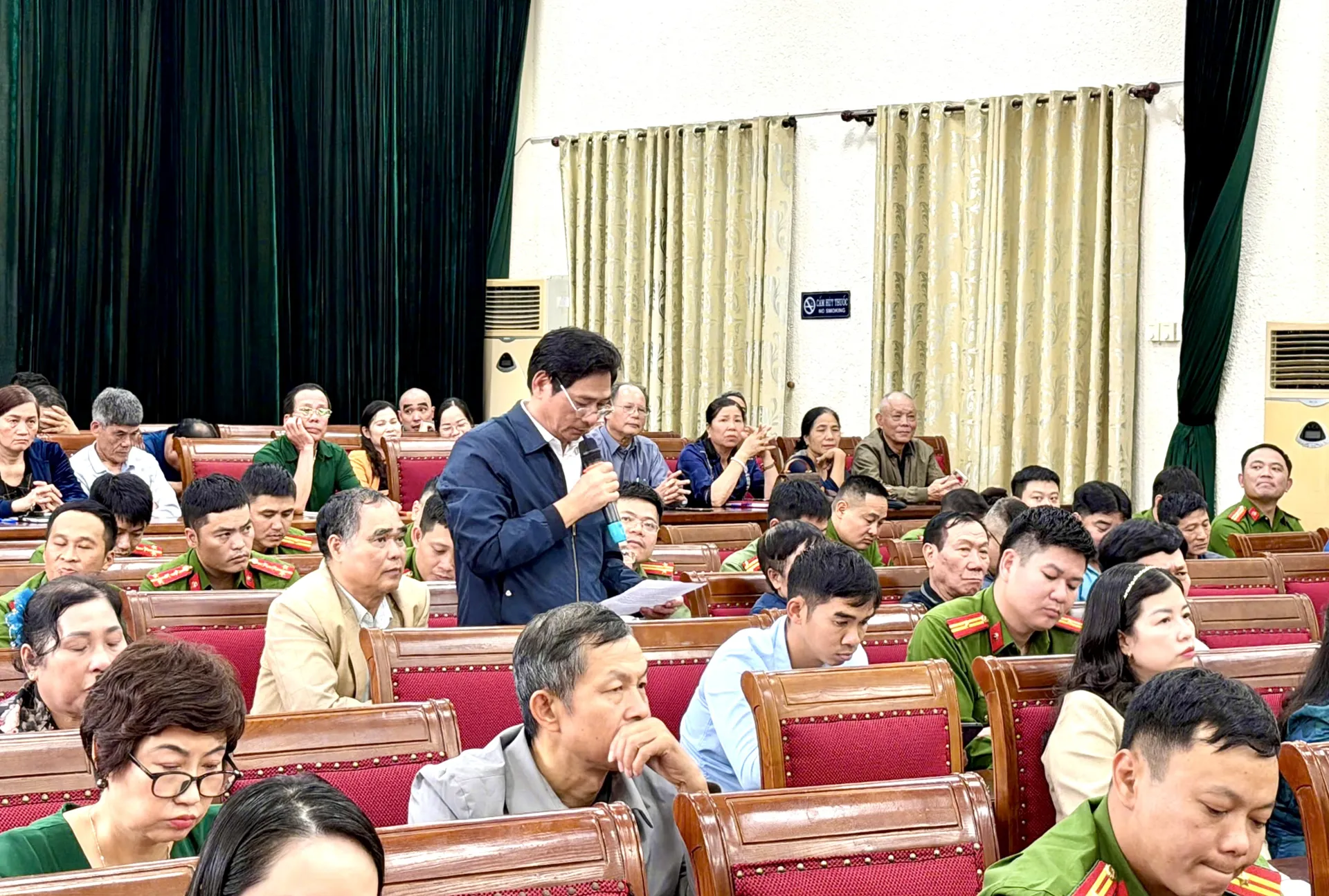 Tại hội nghị, đại diện cấp ủy các thôn, địa bàn dân cư, các đơn vị, doanh nghiệp và tổ chức chính trị - xã hội trên địa bàn đã đóng góp 16 ý kiến tập trung vào các nội dung: công tác đảm bảo ANTT; tuyên truyền, phổ biến pháp luật, đặc biệt là phương thức, thủ đoạn lừa đảo qua không gian mạng; quản lý cư trú; an toàn phòng cháy, chữa cháy; công tác tuần tra đảm bảo ANTT tại các tuyến, địa bàn trọng điểm.