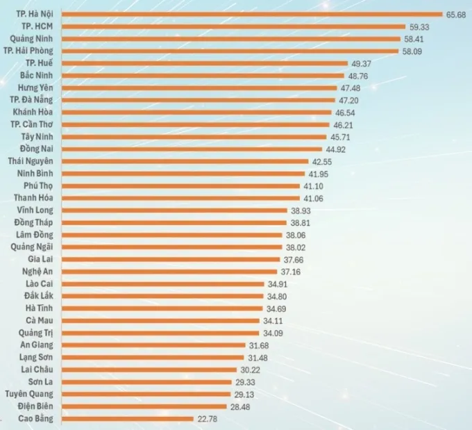 Trong khuôn khổ sự kiện công bố kết quả PII năm 2025, Top 5 địa phương dẫn đầu đã được vinh danh. Cụ thể, Hà Nội tiếp tục giữ vị trí số 1 năm thứ ba liên tiếp với 18/52 chỉ số dẫn đầu cả nước, khẳng định vai trò đầu tàu về phát triển kinh tế - xã hội dựa trên khoa học công nghệ và đổi mới sáng tạo. TP Hồ Chí Minh giữ vững vị trí thứ 2, dẫn đầu trụ cột cơ sở hạ tầng và 13 chỉ số. Quảng Ninh lần đầu vươn lên vị trí thứ 3, dẫn đầu 7 chỉ số. Hải Phòng đứng thứ 4, nổi bật ở trụ cột Thể chế. Huế góp mặt trong Top 5 nhờ thế mạnh về vốn con người và dịch vụ.