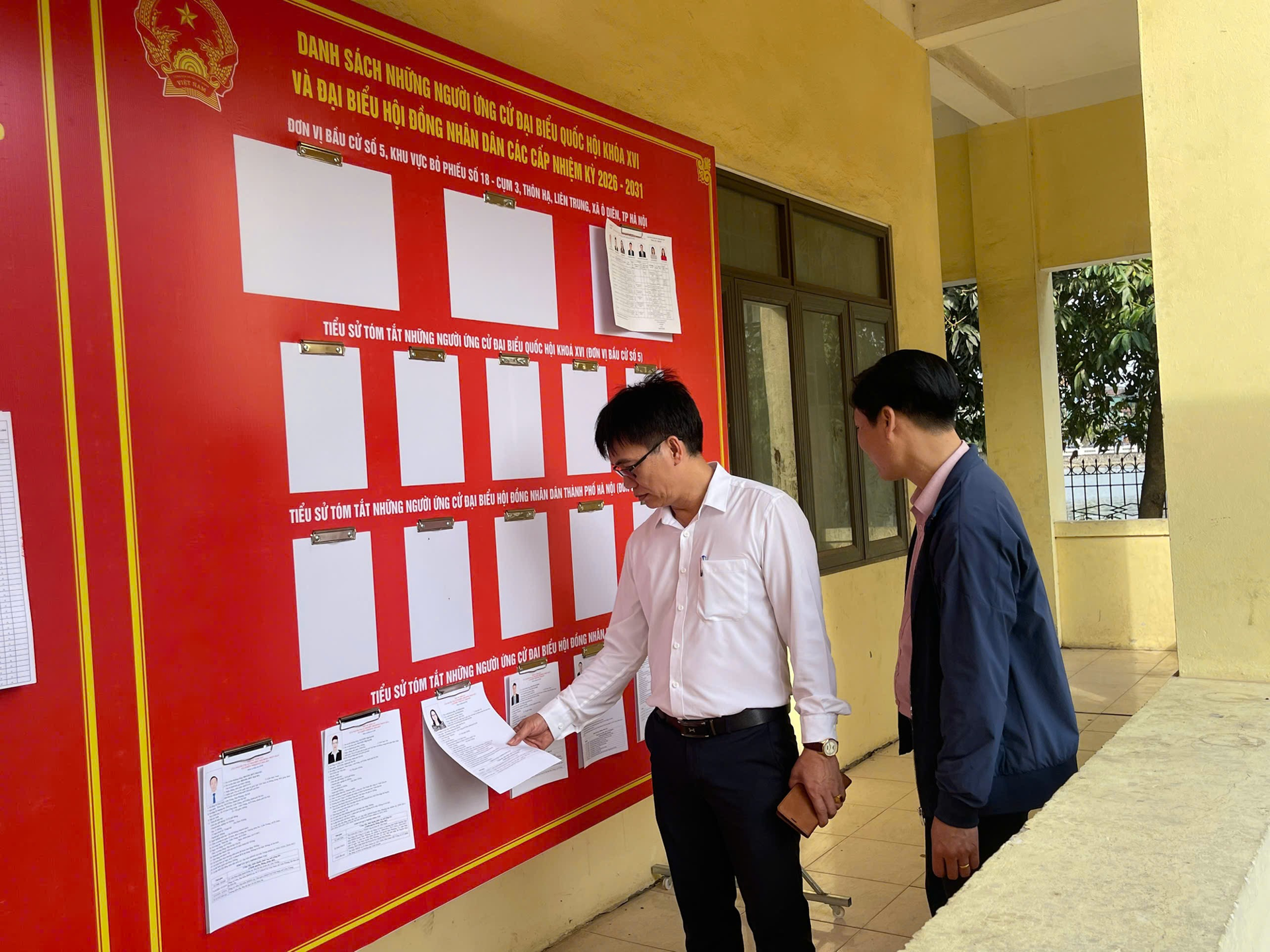 Phó Bí thư Thường trực Đảng ủy xã Ô Diên Phạm Hồng Hoàn kiểm tra công tác chuẩn bị bầu cử tại khu vực Liên Trung.