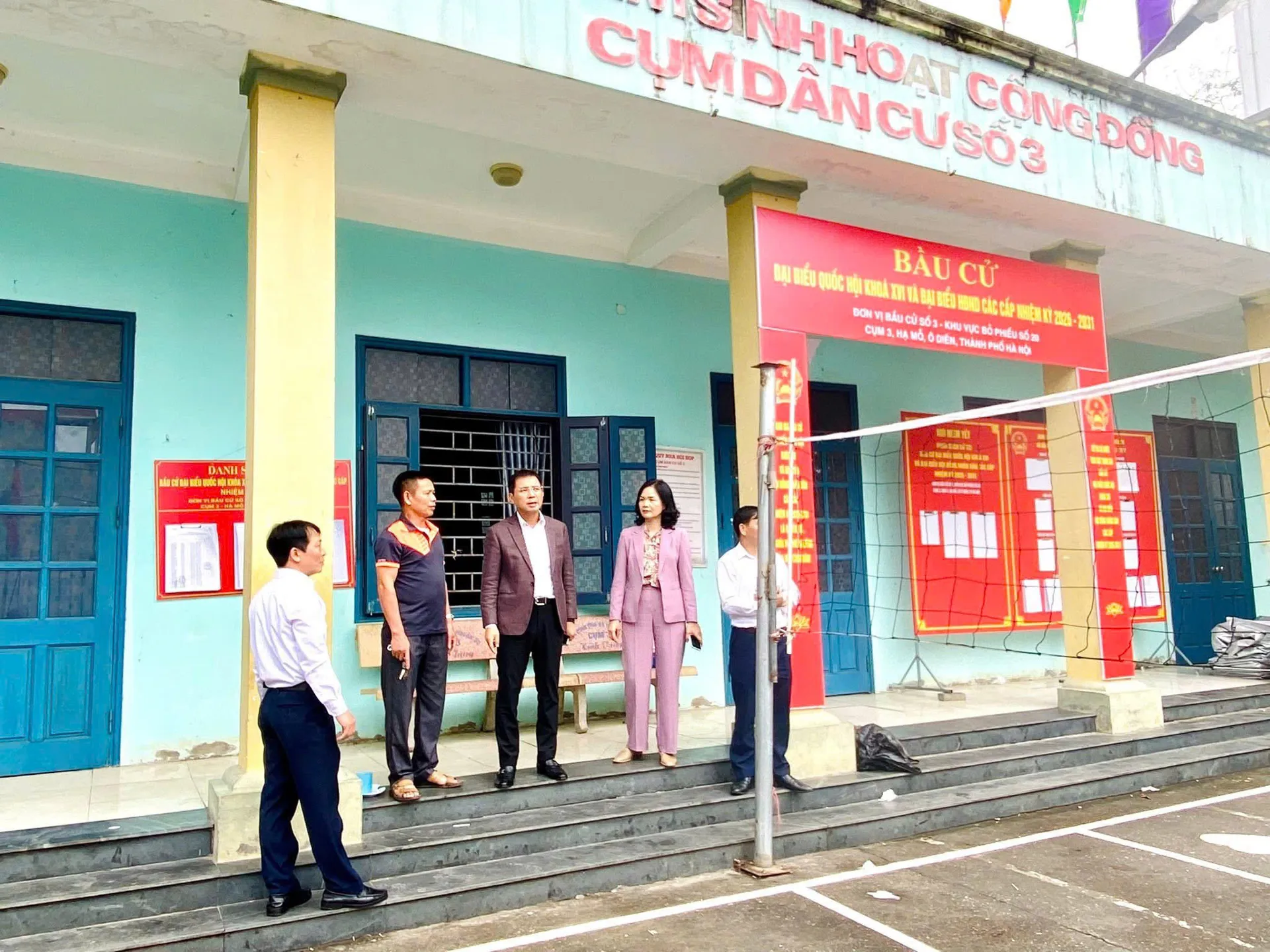 Bí thư Đảng ủy, Chủ tịch HĐND xã Ô Diên Nguyễn Văn Đức kiểm tra tại khu vực bầu cử Hạ Mỗ.