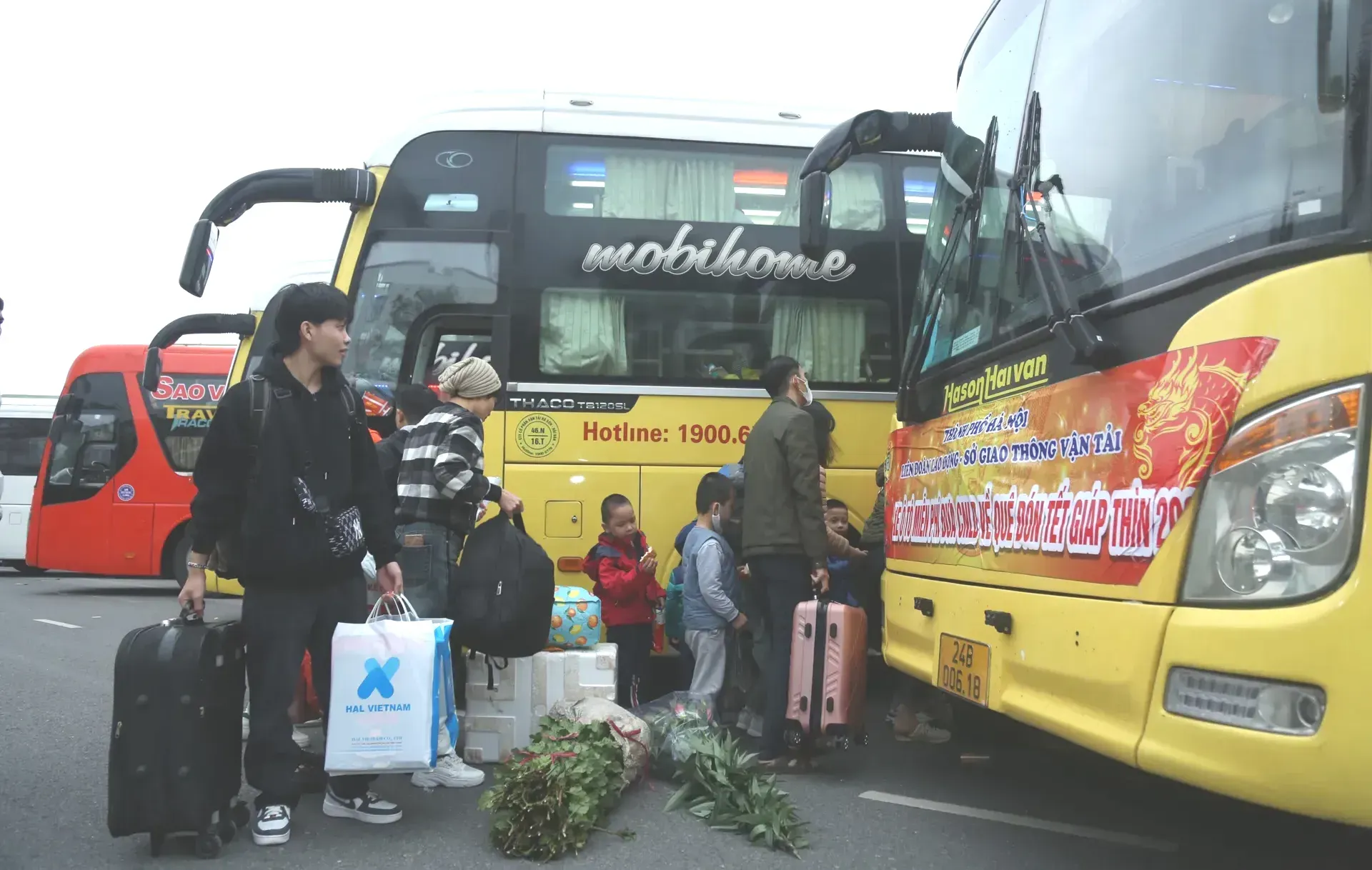 Người lao động tại Hà Nội trên chuyến xe về quê đón Tết năm 2024 do LĐLĐ TP tổ chức. Ảnh: Phạm Hùng