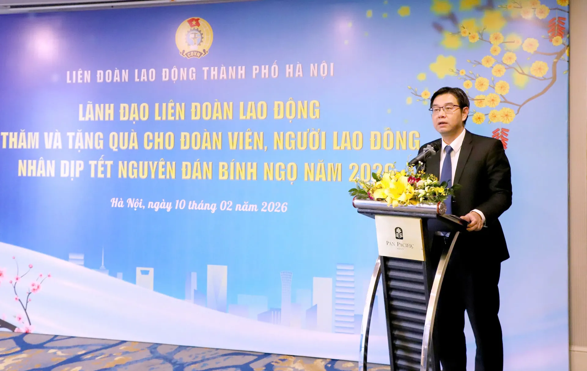 Chủ tịch LĐLĐ TP Hà Nội Nguyễn Văn Thắng cho biết, với tinh thần “Tất cả đoàn viên, người lao động đều có Tết, vui Tết”, không ai bị bỏ lại phía sau, trong dịp Tết Nguyên đán Bính Ngọ 2026, các cấp Công đoàn Thủ đô đã và đang triển khai nhiều hoạt động thiết thực để quan tâm, chăm lo Tết cho đoàn viên, người lao động - nhất là những trường hợp có hoàn cảnh khó khăn, ốm đau, bị tai nạn lao động, công nhân lao động không có điều kiện về quê ăn Tết, công nhân lao động làm việc xuyên Tết…