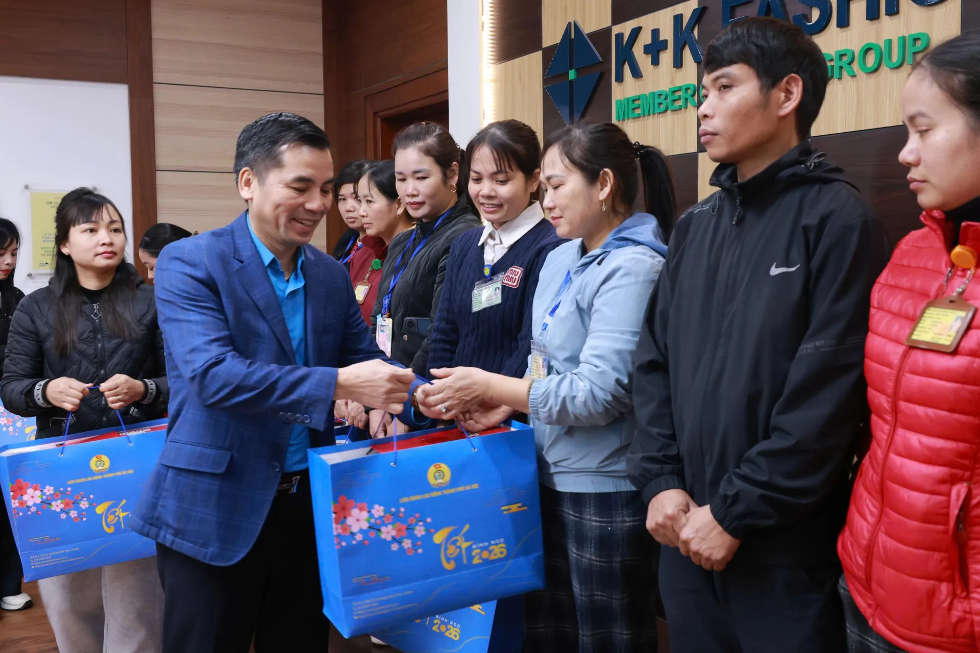 Đại diện lãnh đạo Công ty TNHH K+K Fashion cho biết, thời gian qua Công đoàn Công ty luôn phát huy tốt vai trò đại diện, bảo vệ quyền và lợi ích hợp pháp, chính đáng của người lao động. Nhân dịp Tết Bính Ngọ 2026, Công đoàn phối hợp với chủ doanh nghiệp tổ chức bữa cơm tất niên Công đoàn cho gần 4.000 người lao động vào ngày 11/2/2026 tại nhà máy. Bên cạnh đó, mức thưởng Tết năm nay cao hơn năm trước, có thưởng thâm niên; nhiều công nhân được thưởng tới 130% lương cơ bản. Mỗi người lao động còn được nhận phần quà Tết trị giá 330.000 đồng, góp phần giúp công nhân đón Tết đủ đầy, ấm áp hơn.