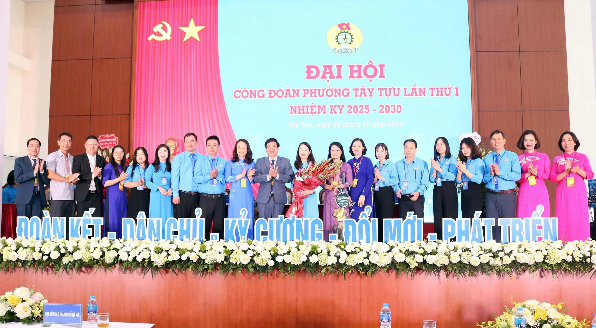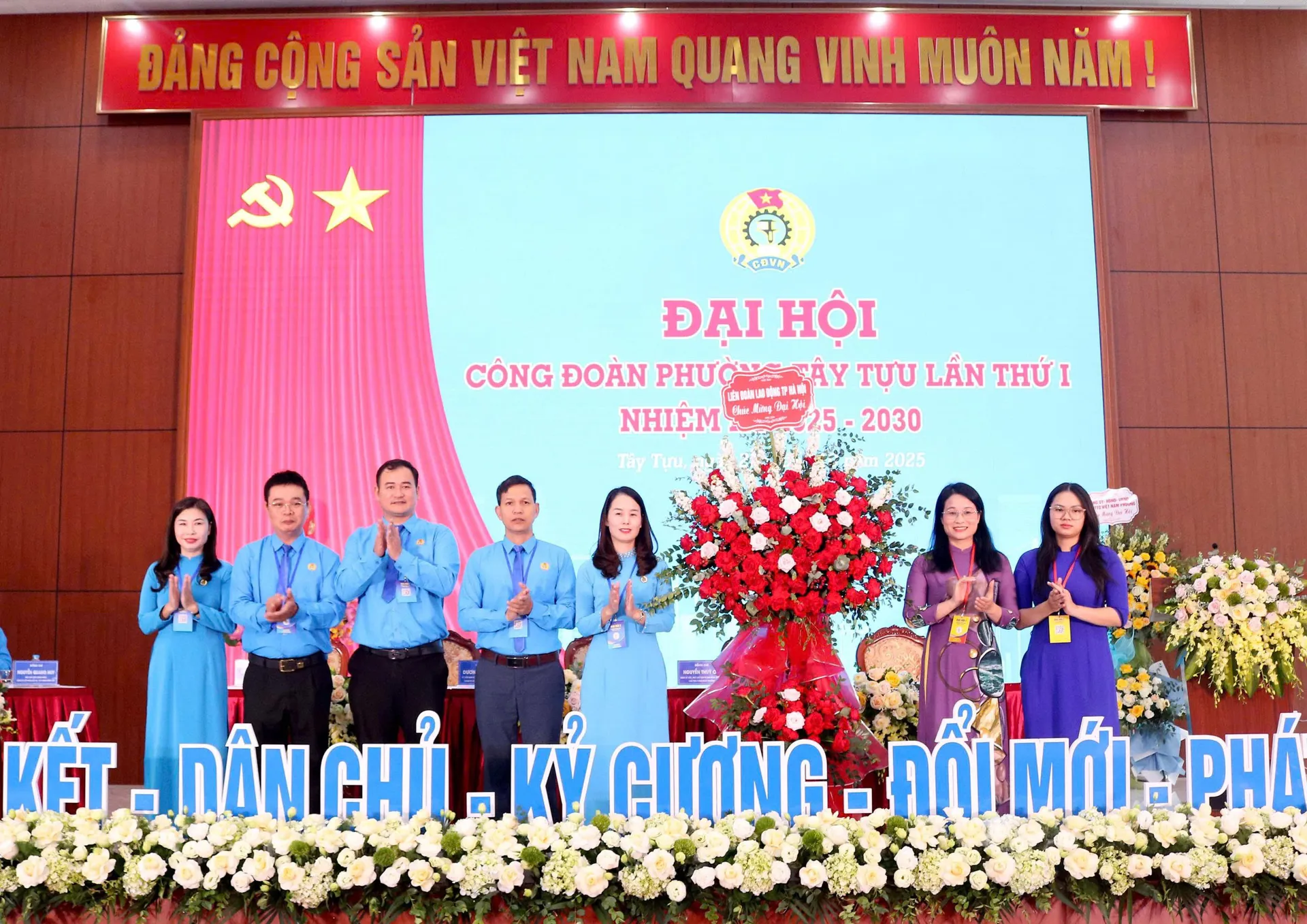 Ban Chấp hành Công đoàn phường Tây Tựu nhiệm kỳ 2025 - 2030 ra mắt Đại hội.
