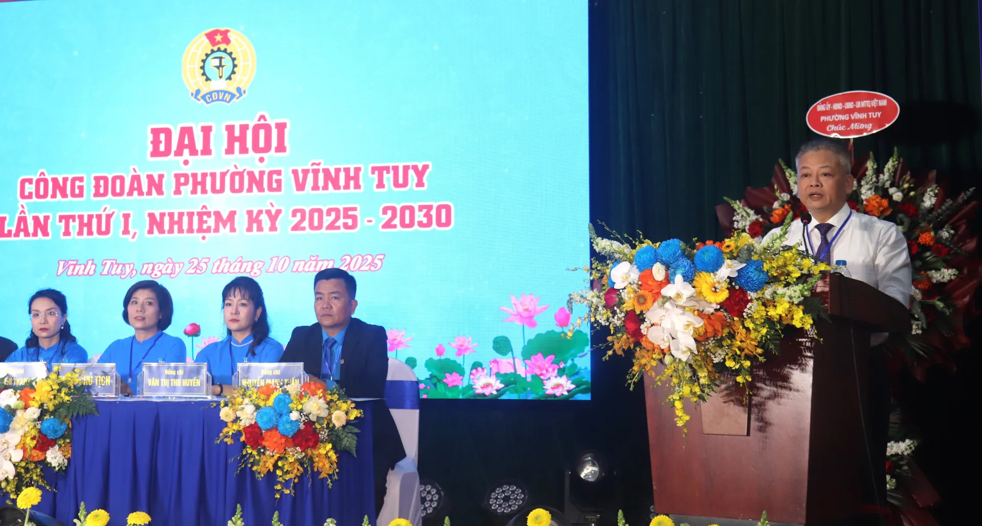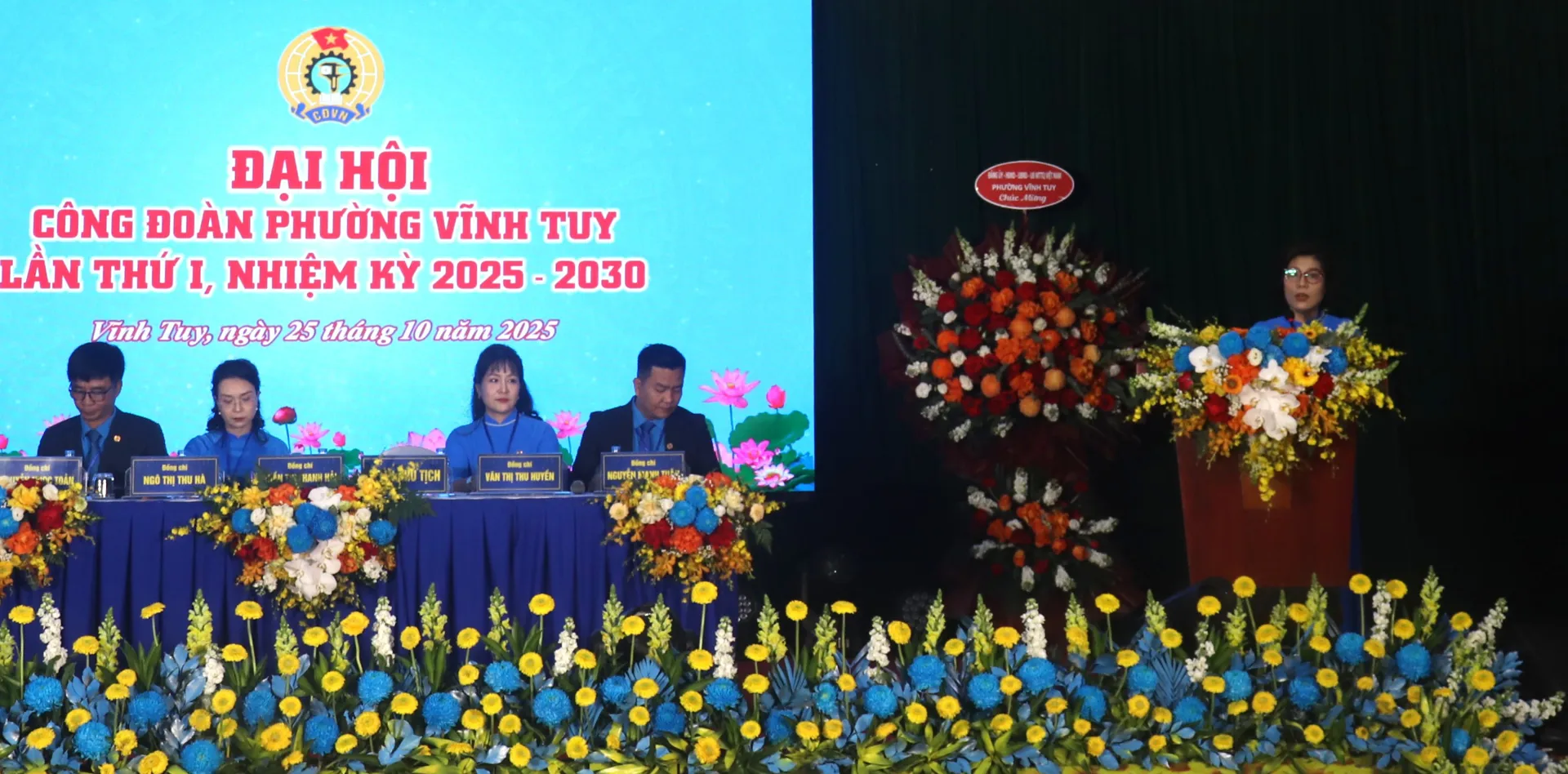 Chiều nay, 25/10, Đại hội Công đoàn phường Vĩnh Tuy lần thứ I, nhiệm kỳ 2025-2030 được tổ chức trang trọng với sự tham dự của 150 đại biểu chính thức, đại diện cho hơn 4.000 đoàn viên, công nhân viên chức lao động (CNVCLĐ) trên địa bàn.