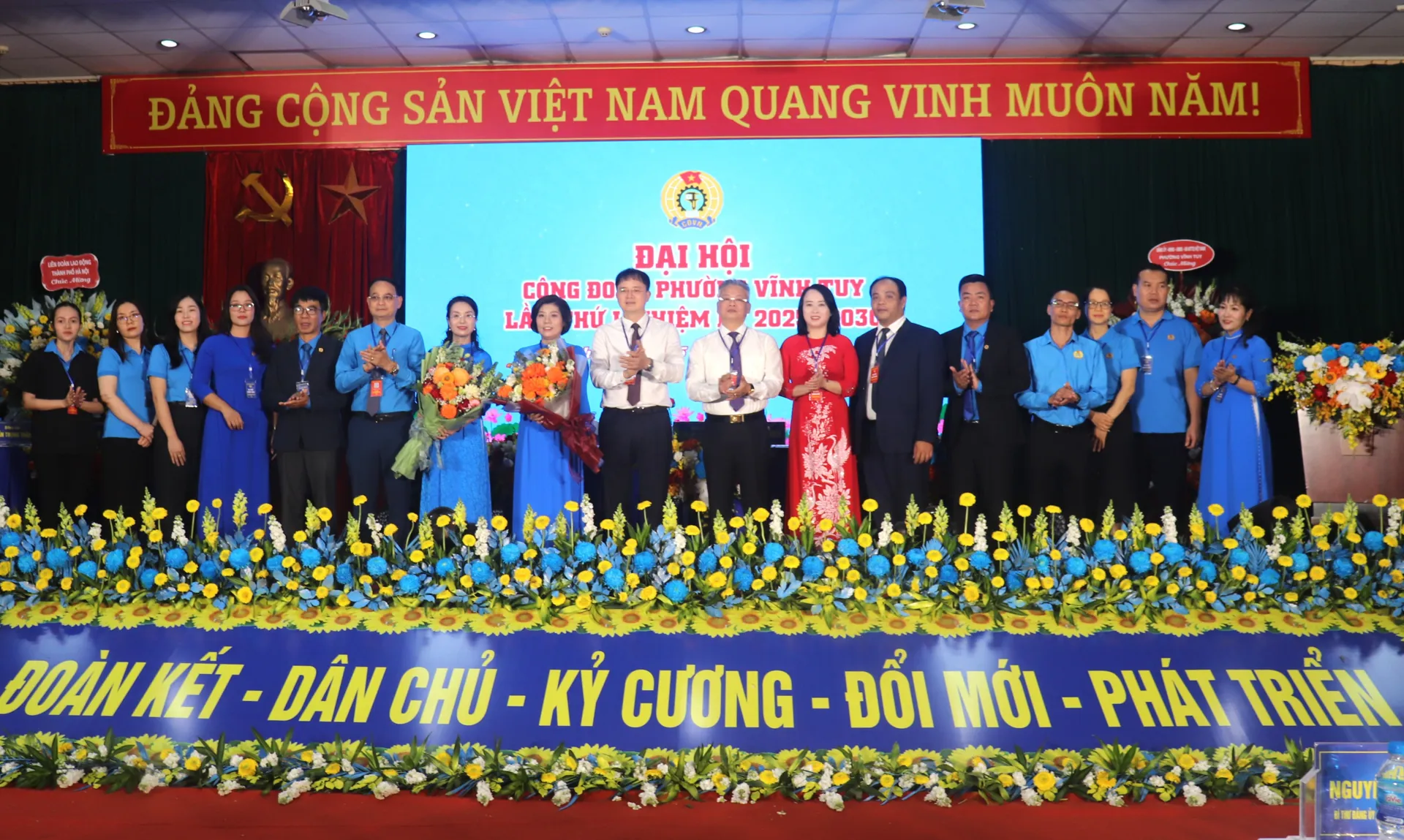 Lãnh đạo phường Vĩnh Tuy, đại diện LĐLĐ TP Hà Nội và các đại biểu dự Đại hội