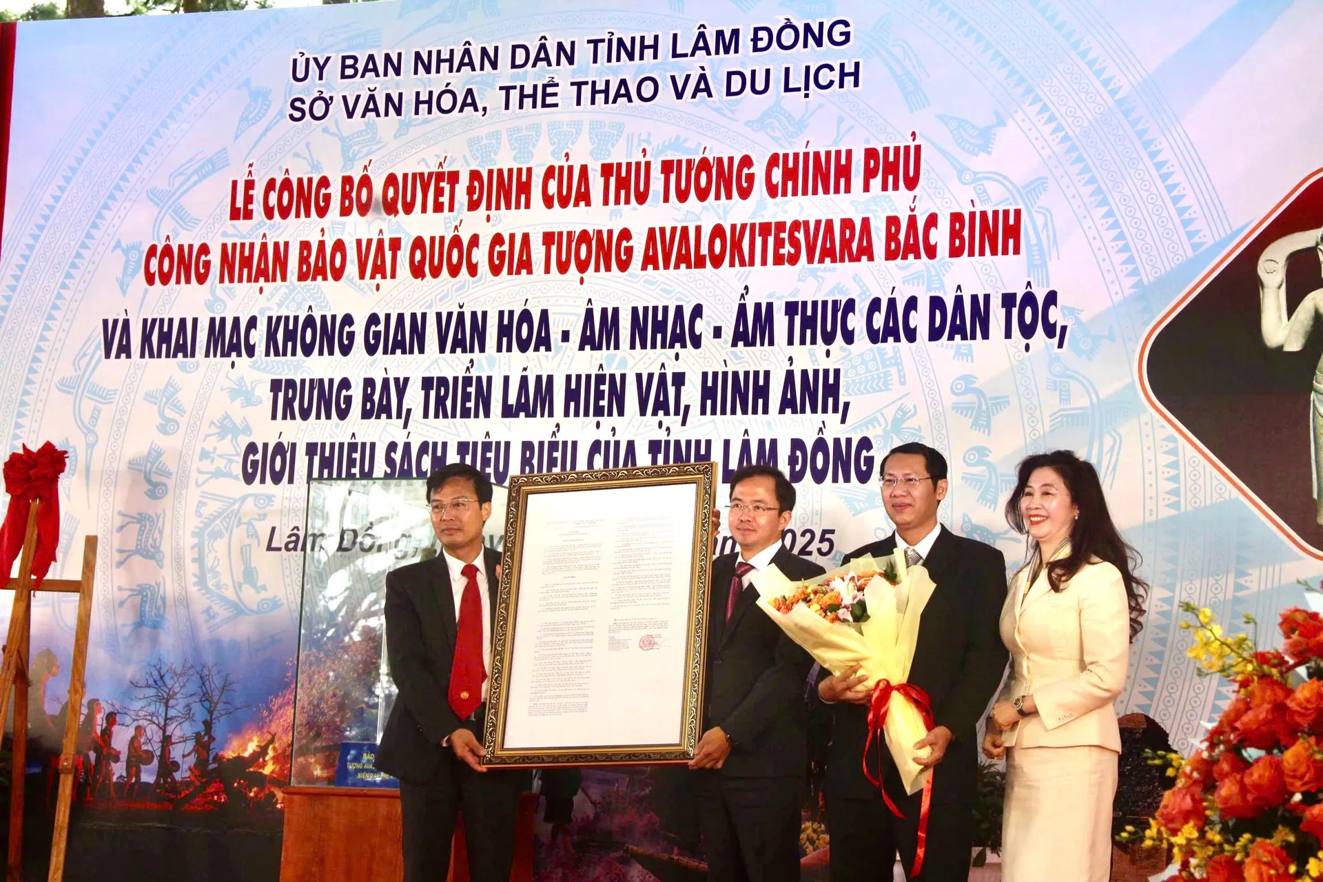 Sở Văn hóa, Thể thao và Du lịch tỉnh Lâm Đồng nhận quyết định của Thủ tướng Chính phủ công nhận tượng Avalokitesvara Bắc Bình là Bảo vật quốc gia.