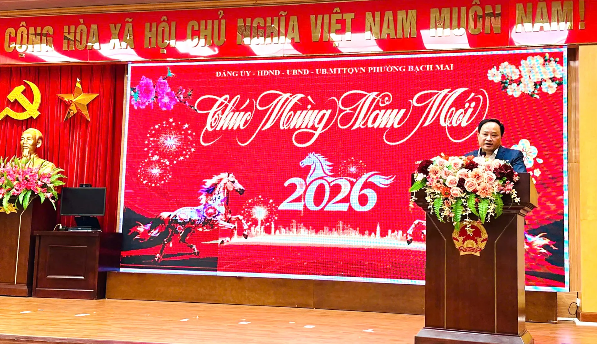 Bí thư Đảng ủy, Chủ tịch HĐND phường Bạch Mai Trần Quyết Thắng chủ trì gặp mặt, chúc Tết, quán triệt nhiệm vụ đầu năm Bính Ngọ 2026 đối với toàn thể cán bộ, công chức, viên chức phường Bạch Mai