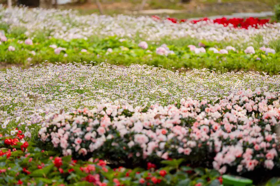 Một góc tiểu cảnh trong Hội hoa xuân với gần 30.000 chậu hoa, trái do Sun Group tài trợ để phục vụ người dân du xuân Bính Ngọ. Ảnh: Sun Group