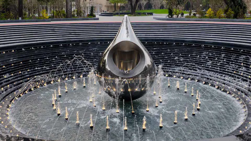 Sau 5 năm kể từ ngày Covid-19 bùng phát, chiều ngày 12/2, TP Hồ Chí Minh chính thức khánh thành công viên tưởng niệm 23.000 người đã mất, với biểu tượng “Giọt nước” đặt giữa quảng trường trung tâm. Ảnh: Sun Group