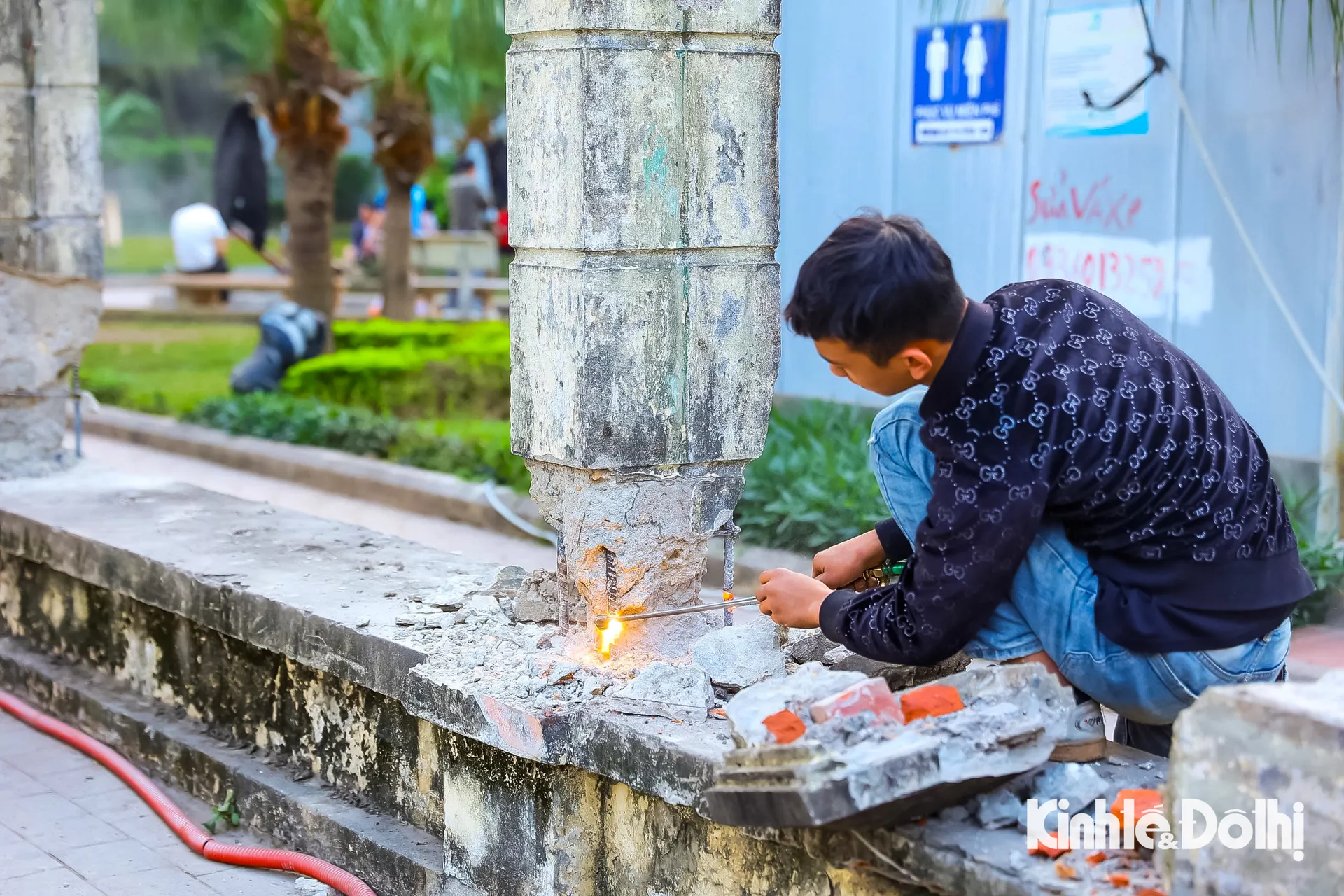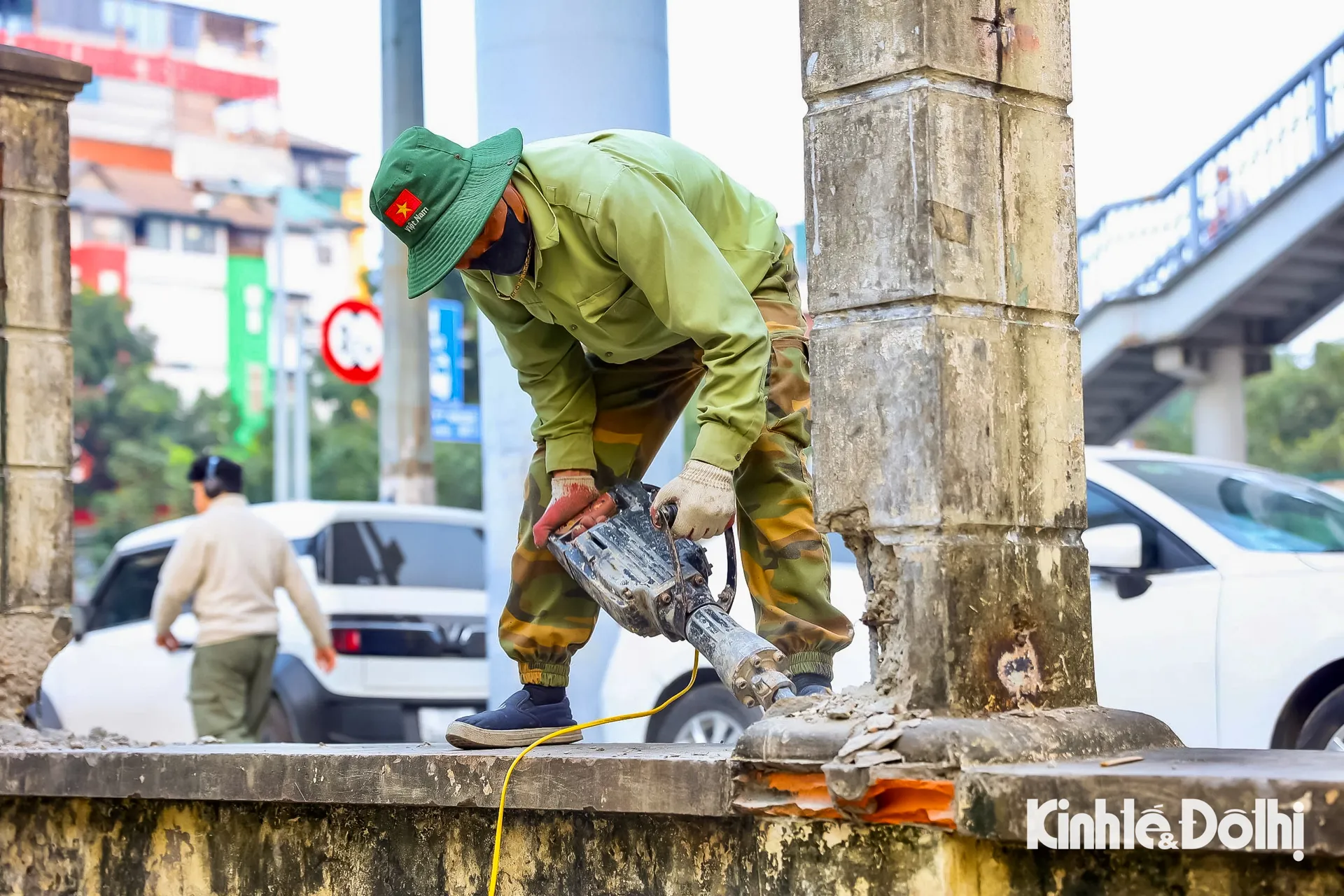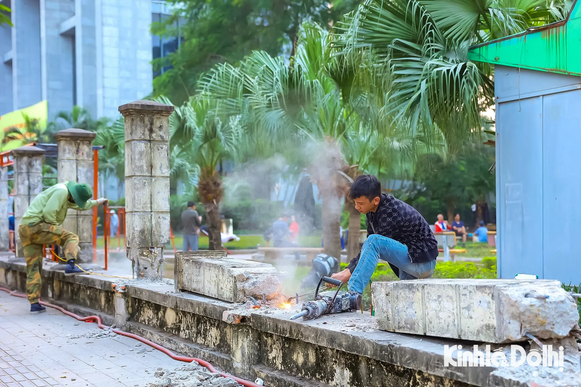 Kinhtedothi-Những ngày giữa tháng Tư ngay trước thềm kỷ niệm 50 năm Ngày Giải phóng miền Nam thống nhất đất nước, tất bật và hối hả là không khí thấy rõ trên công trường thi công dự án “Cải tạo, chỉnh trang hè phố Lê Duẩn, cổng, hàng rào Công viên Thống Nhất” (đoạn từ phố Trần Nhân Tông tới phố Đại Cồ Việt, quận Hai Bà Trưng).