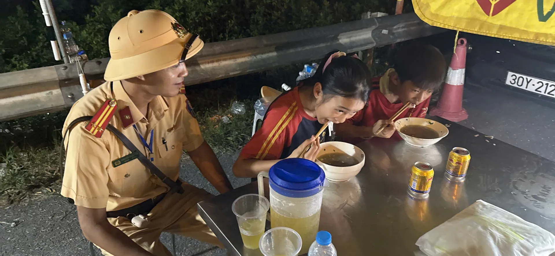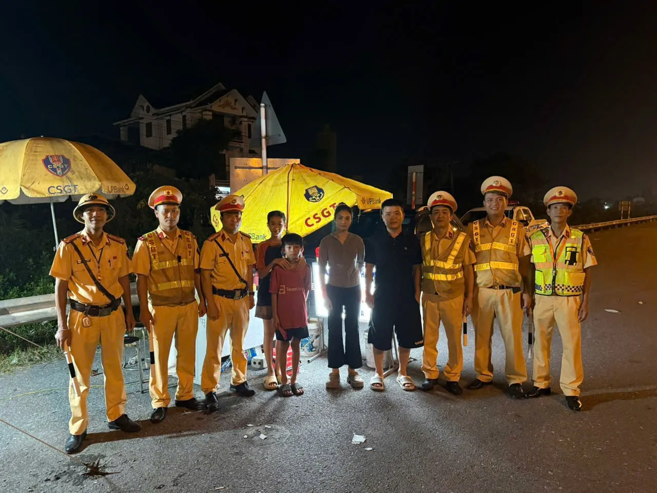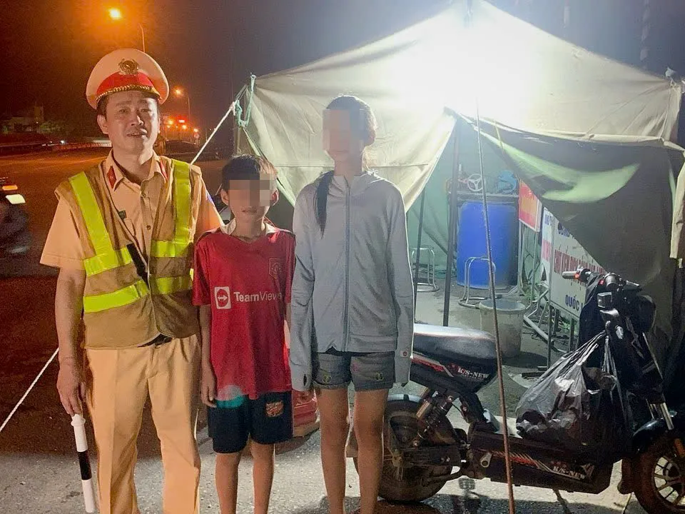 Khoảng 19h30, khi làm nhiệm vụ tại Km213+350 Quốc lộ 1A, Tổ công tác Đội CSGT đường bộ số 8 do Đại úy Nguyễn Công Đoàn - Phó Đội trưởng làm Tổ trưởng, đã phát hiện hai cháu nhỏ đang dắt bộ xe đạp điện trên quốc lộ có biểu hiện lạc đường.