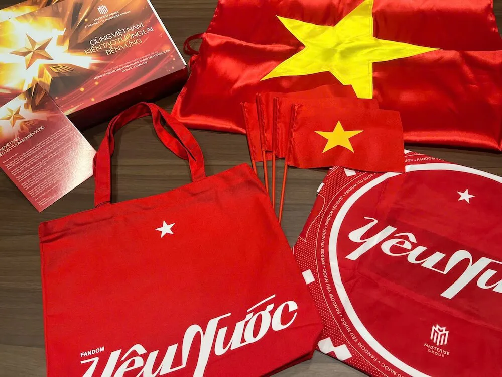 Bộ quà “Yêu Nước”, hợp tác cùng Fandom Yêu Nước, gồm cờ Tổ quốc, cờ cầm tay, khăn lụa, túi tote Yêu nước cùng thư ngỏ tri ân, được thiết kế với ý tưởng Tổ quốc là tình yêu lớn của mỗi chúng ta, khơi dậy cảm xúc “Tôi tự hào là người Việt Nam”. Với bộ quà tặng đặc biệt này, cộng đồng cư dân có thể hưởng ứng “Concert Quốc gia” mọi lúc mọi nơi, để mỗi người Việt dù ở bất cứ đâu, đều có thể hòa chung nhịp đập tự hào dân tộc.
