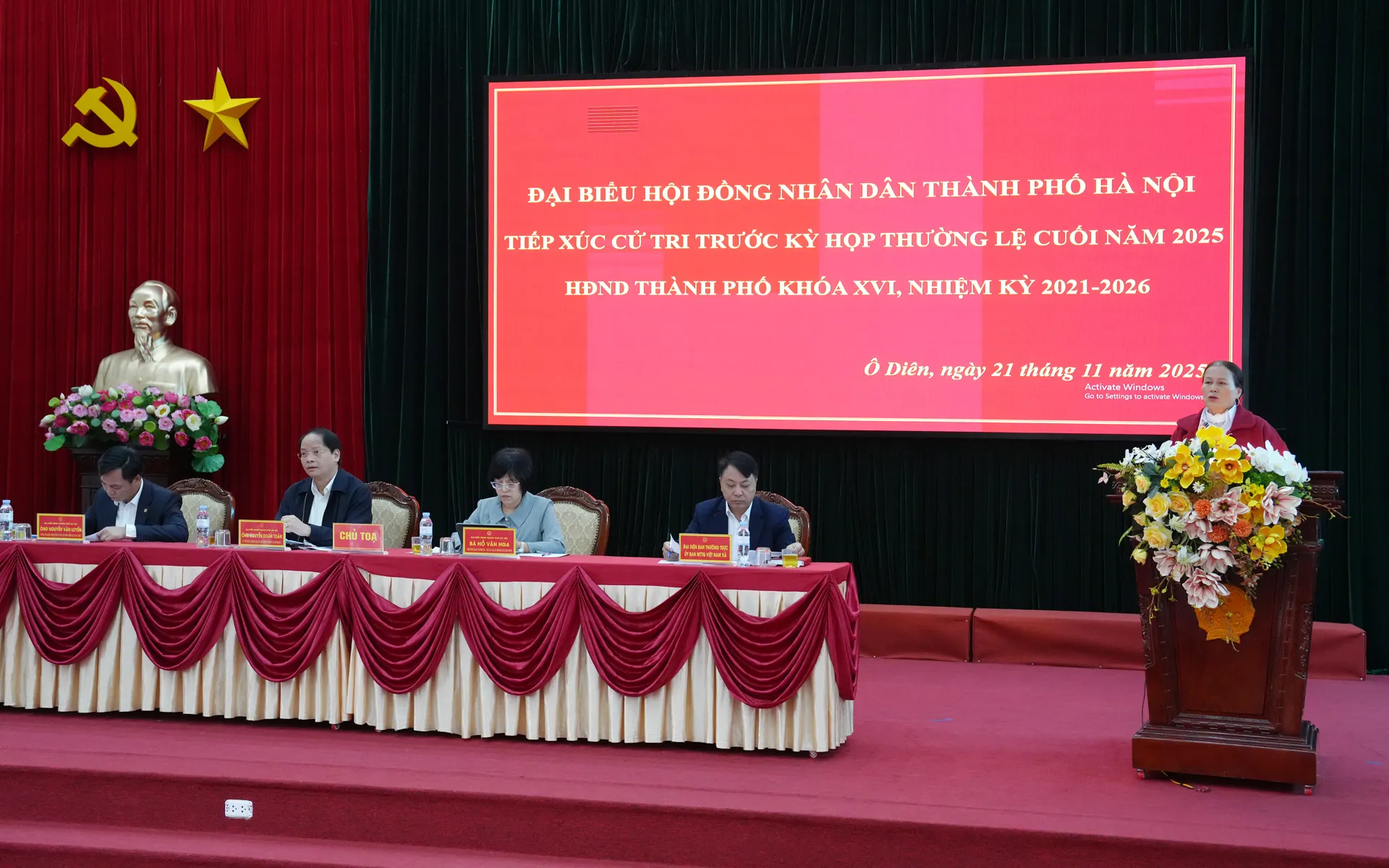 Tại buổi tiếp xúc, Trưởng ban Kinh tế - Ngân sách, HĐND TP Hồ Vân Nga đã thông tin tới cử tri về thời gian, nội dung và công tác tổ chức kỳ họp thường lệ cuối năm của HĐND TP Hà Nội khóa XVI, nhiệm kỳ 2021 – 2026; báo cáo của UBND TP trả lời kiến nghị của cử tri trước và sau Kỳ họp thứ 25.