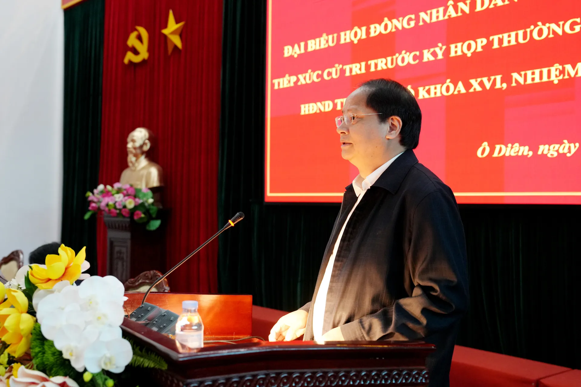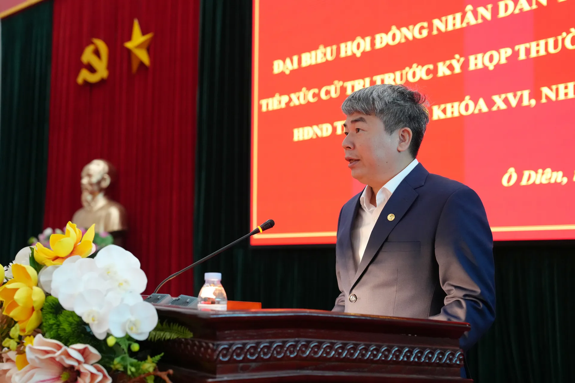 Tại hội nghị, Chủ tịch UBND xã Ô Diên Đỗ Chí Hưng đã trao đổi, làm rõ thêm một số nội dung kiến nghị của cử tri thuộc thẩm quyền của UBND xã.