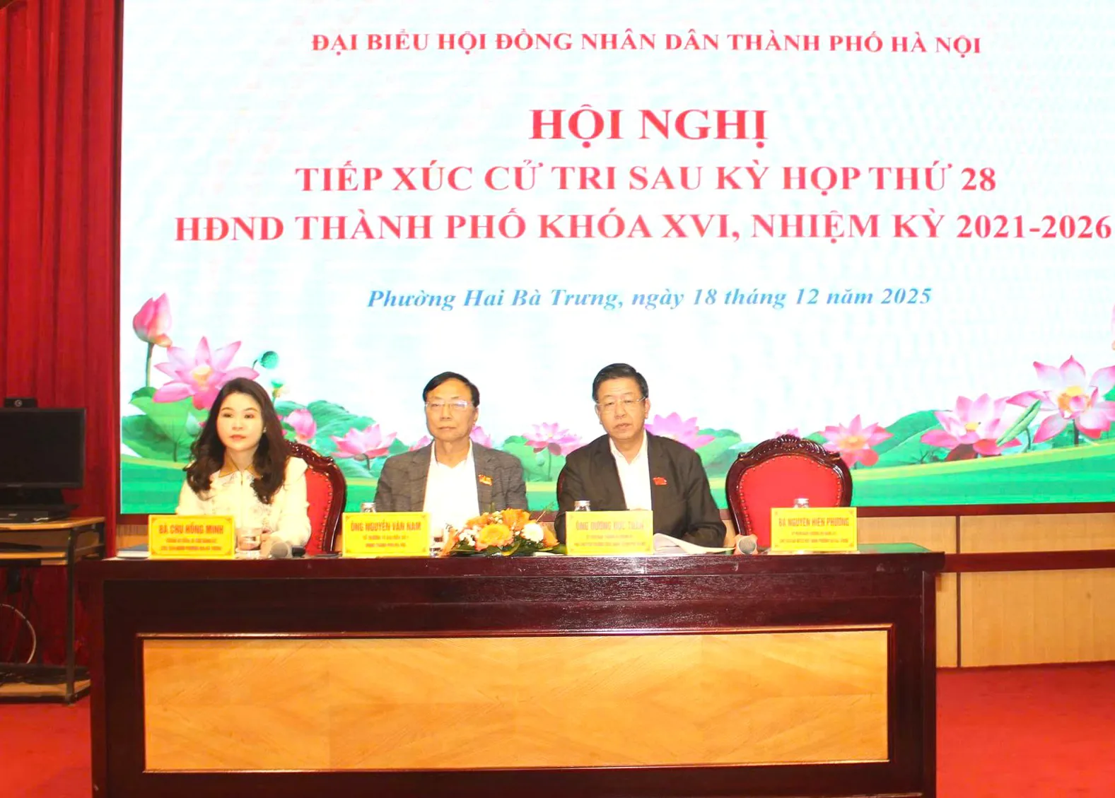 Sáng nay, 18/12, các đại biểu HĐND TP Hà Nội (Đơn vị bầu cử số 4) đã tiếp xúc cử tri các phường Hai Bà Trưng, Bạch Mai, Vĩnh Tuy, sau Kỳ họp thứ 28, HĐND TP Hà Nội khóa XVI, nhiệm kỳ 2021-2026.